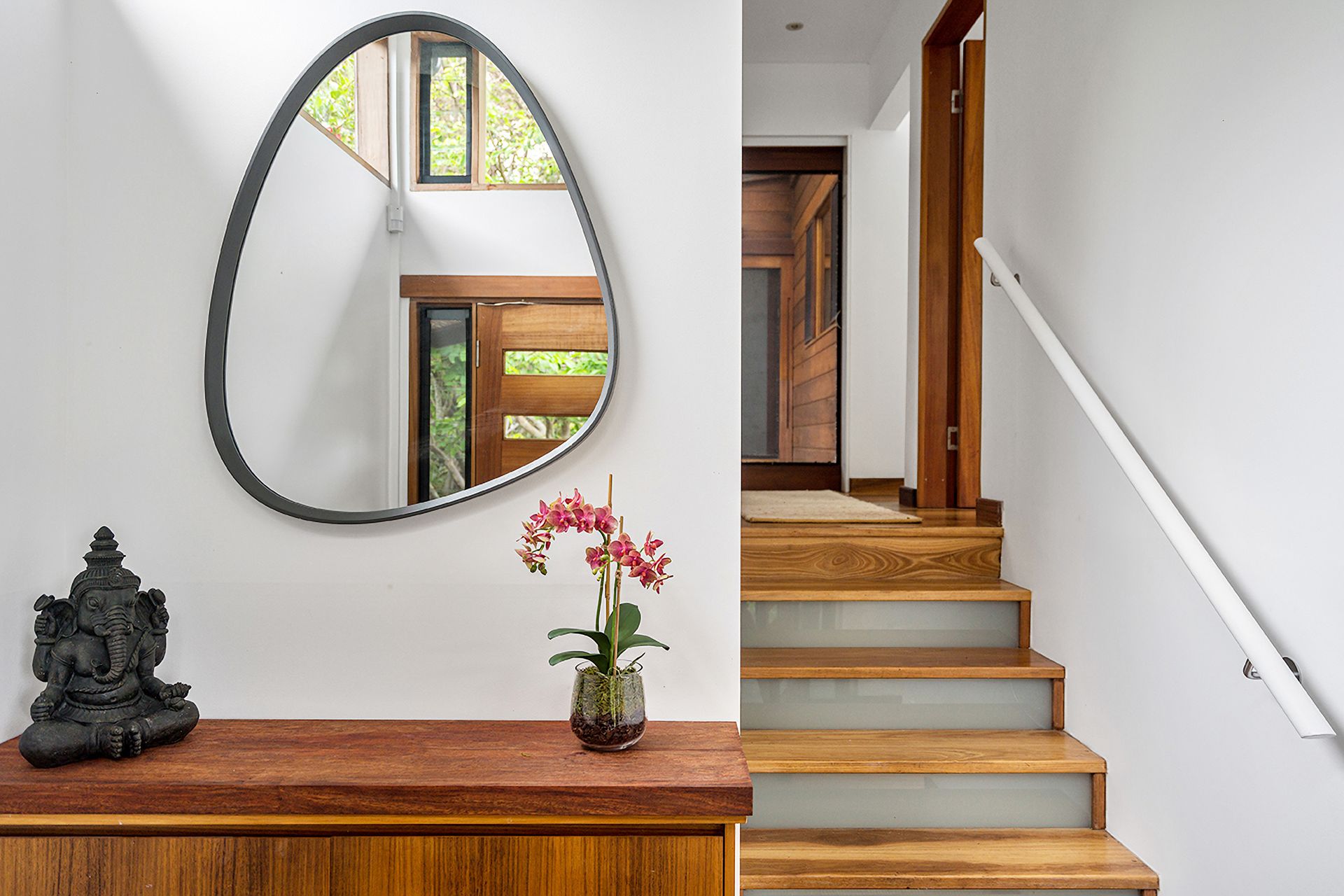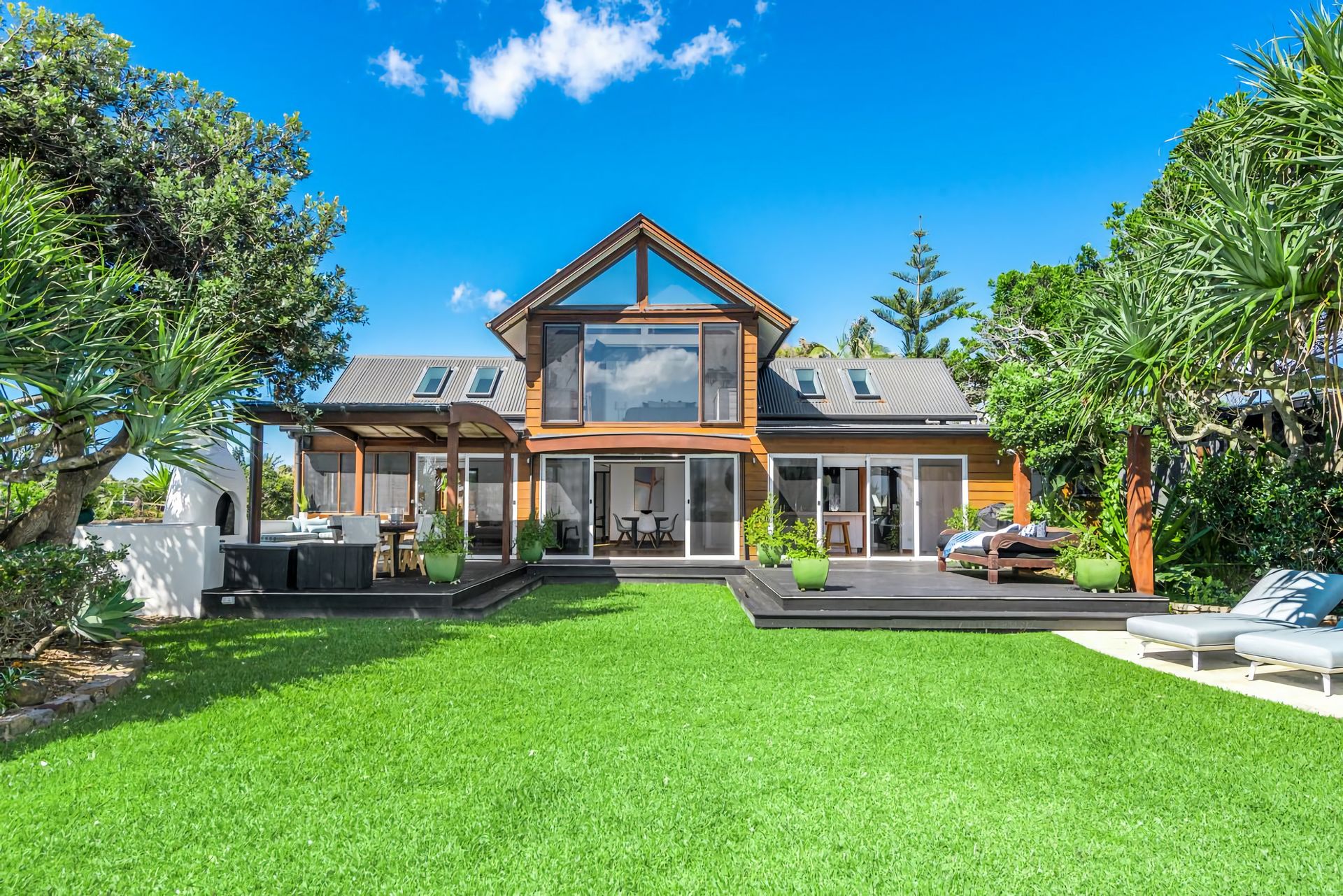 Situated only footsteps from Belongil Beach, the Belongil Eco House has been built utilising the Feng Shui elements of Fire, Wood, Earth, Metal, and Water. The luxury home spans three levels and has breathtaking ocean views.