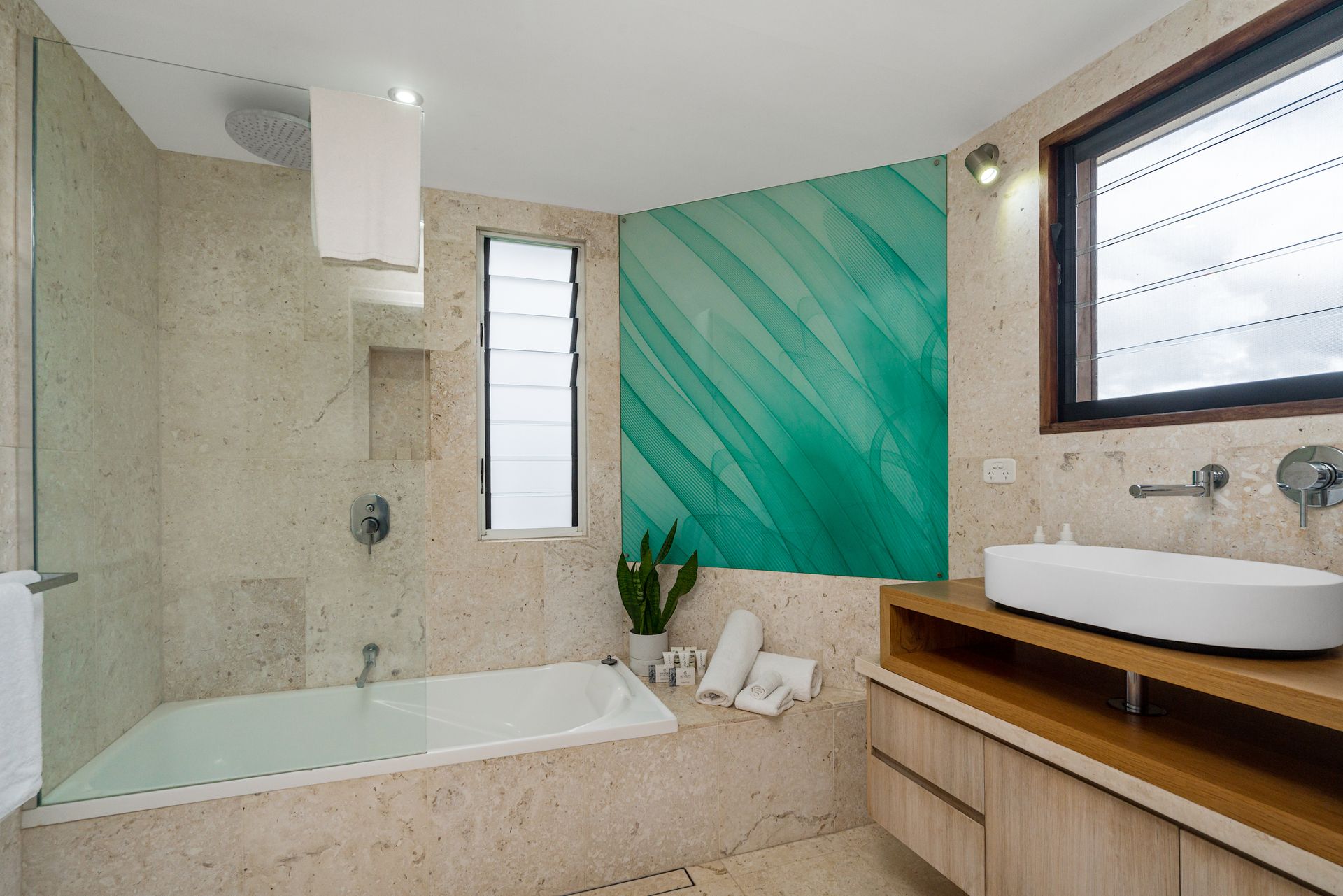 The top floor hosts the master bedroom which has uninterrupted ocean views, and a spacious master suite with a free-standing soaking tub for a private spa-like experience.