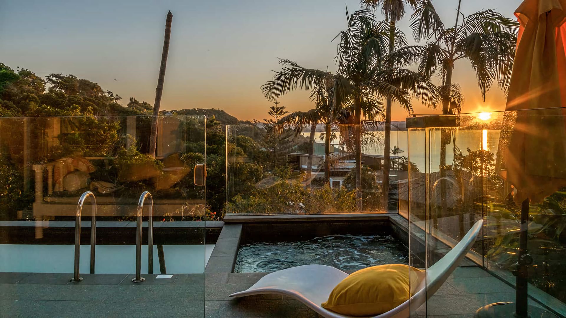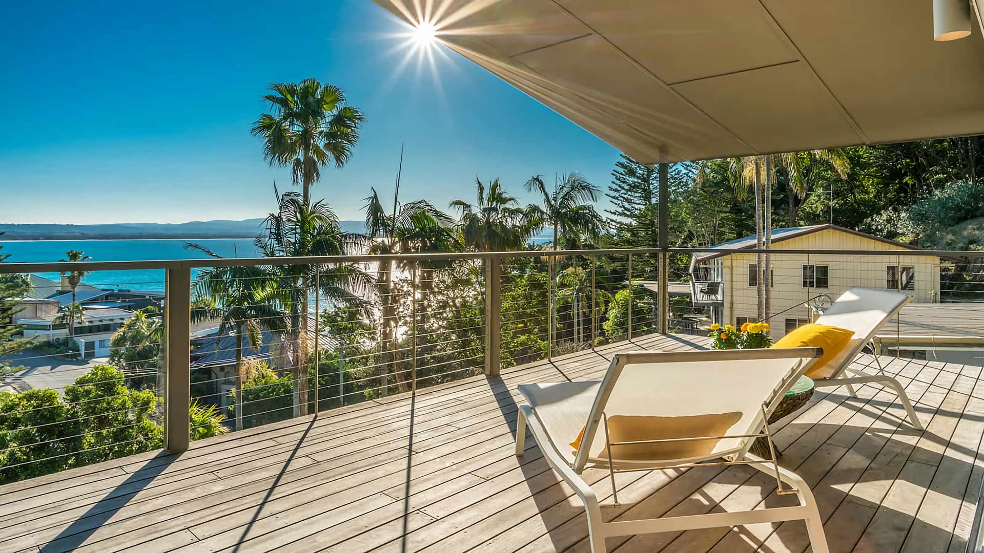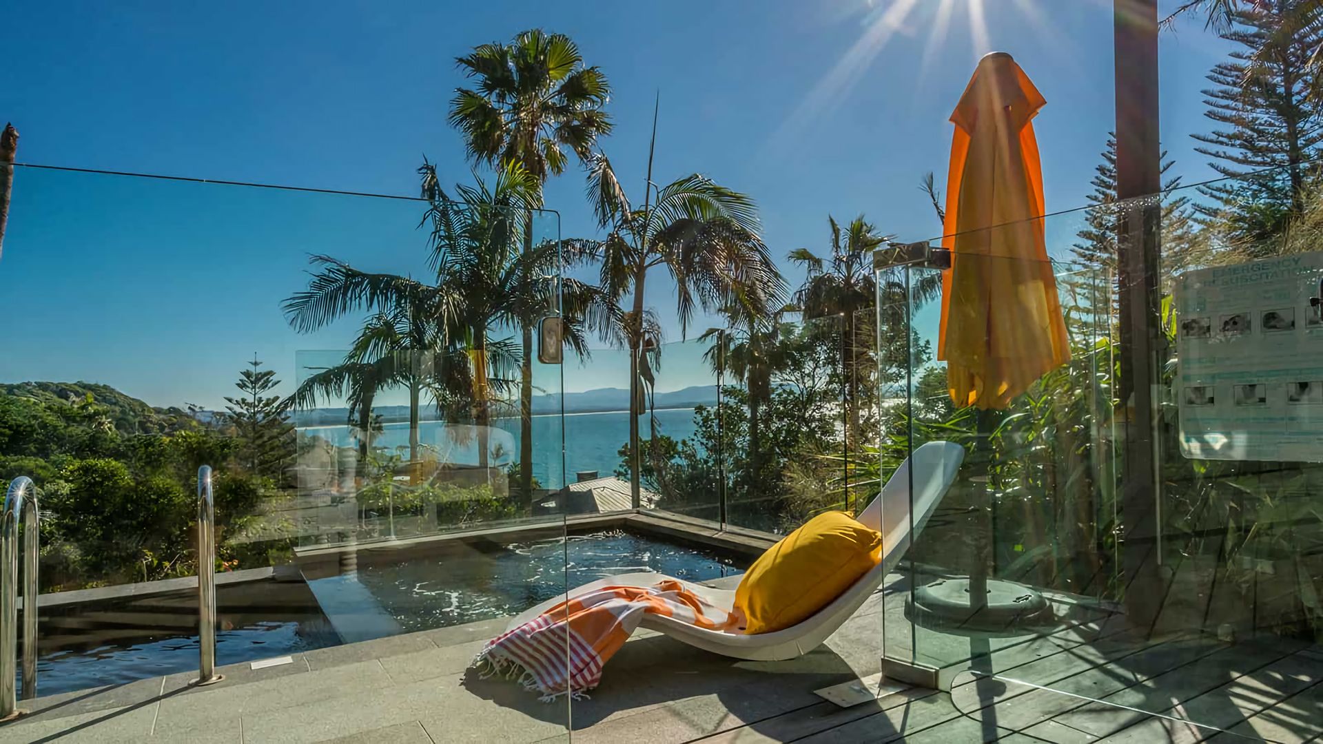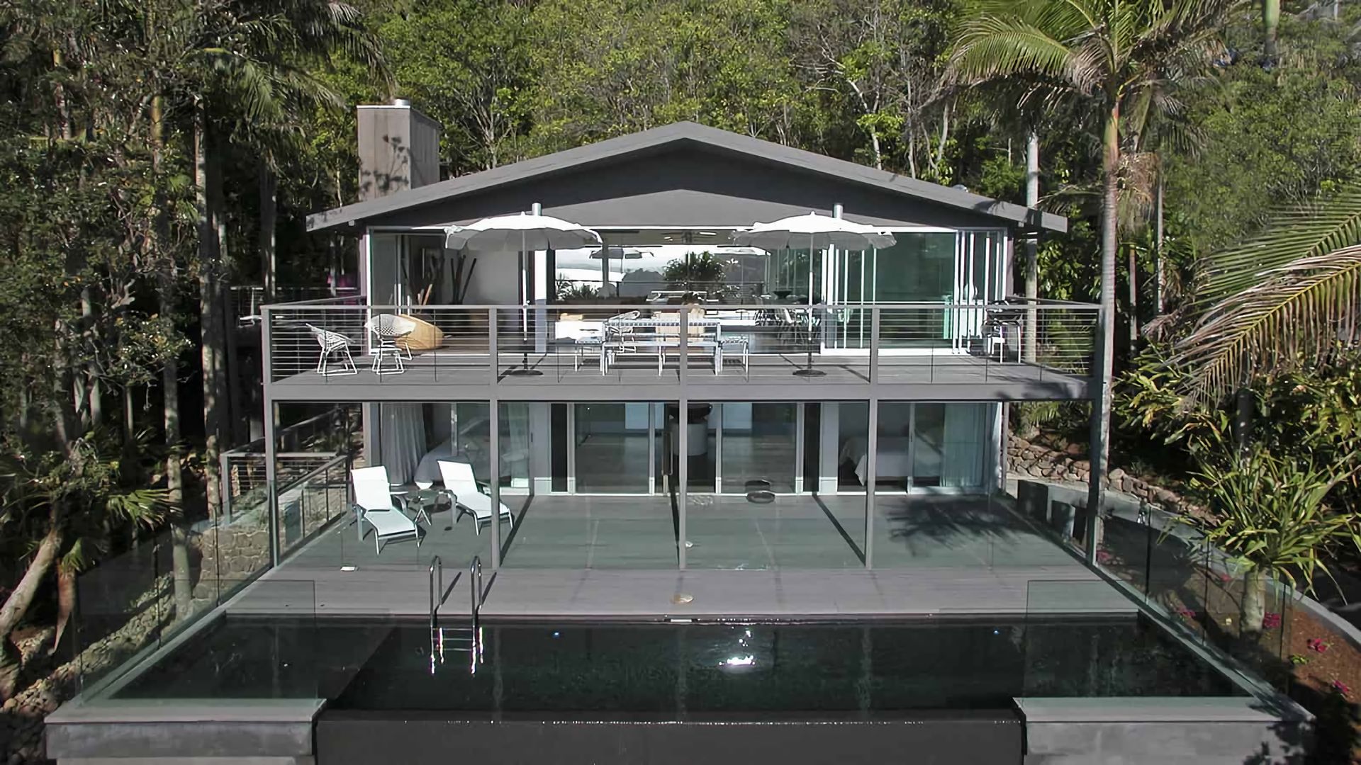 With four bedrooms, Byron Bay Villa will comfortably sleep up to eight guests between quality linen sheets in air-conditioned rooms. The powder room and oval European bath are crowned by domed skylights to disperse the abundant natural sunlight through the rooms. The spacious king-sized master bedroom with adjoining en-suite opens to a private deck that remains your little secret for as long as you choose to keep it.