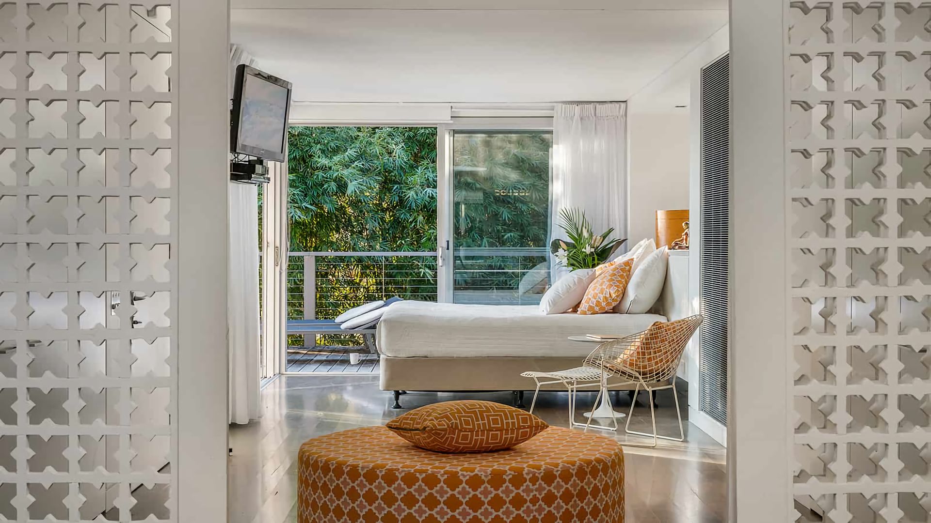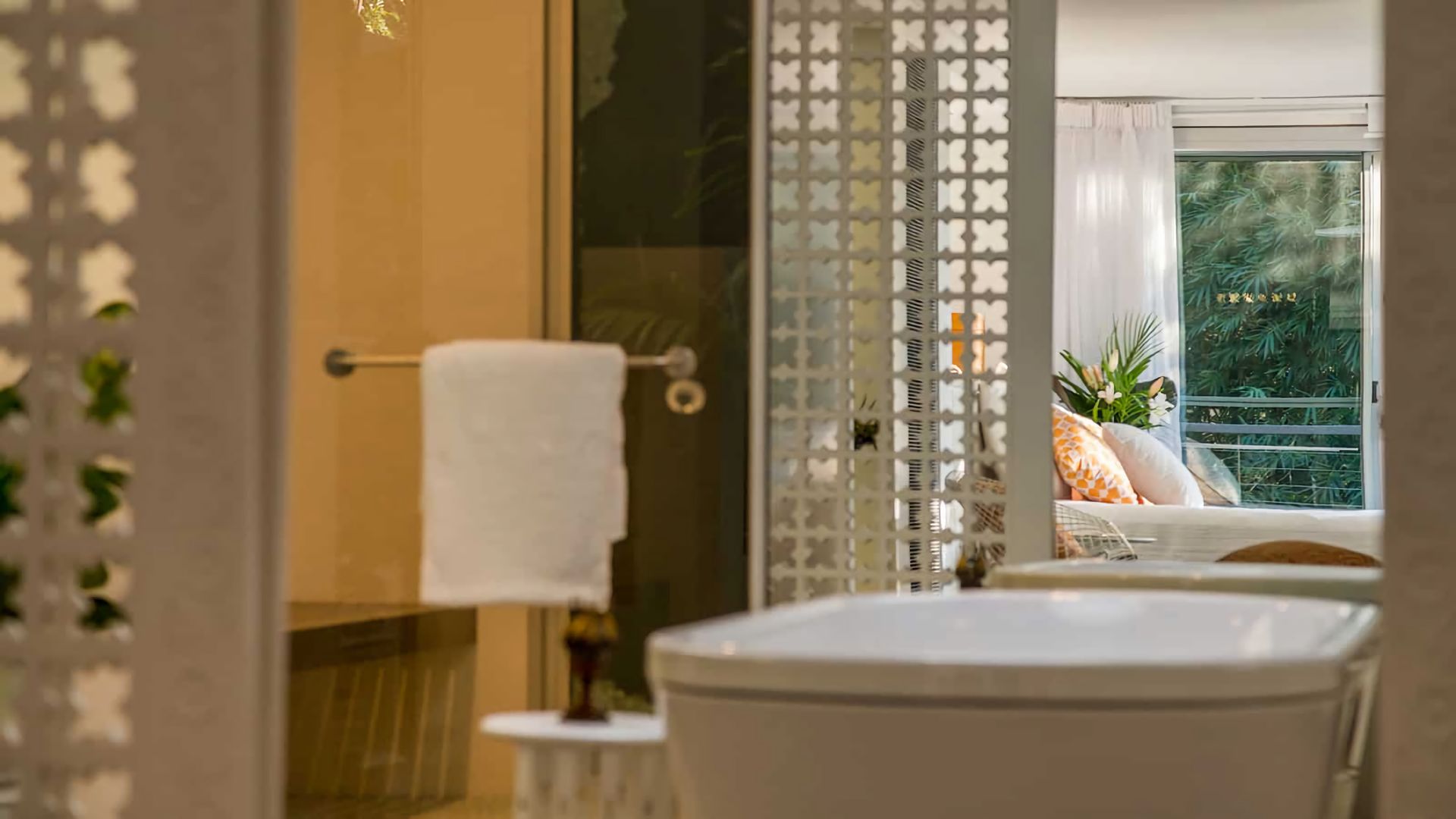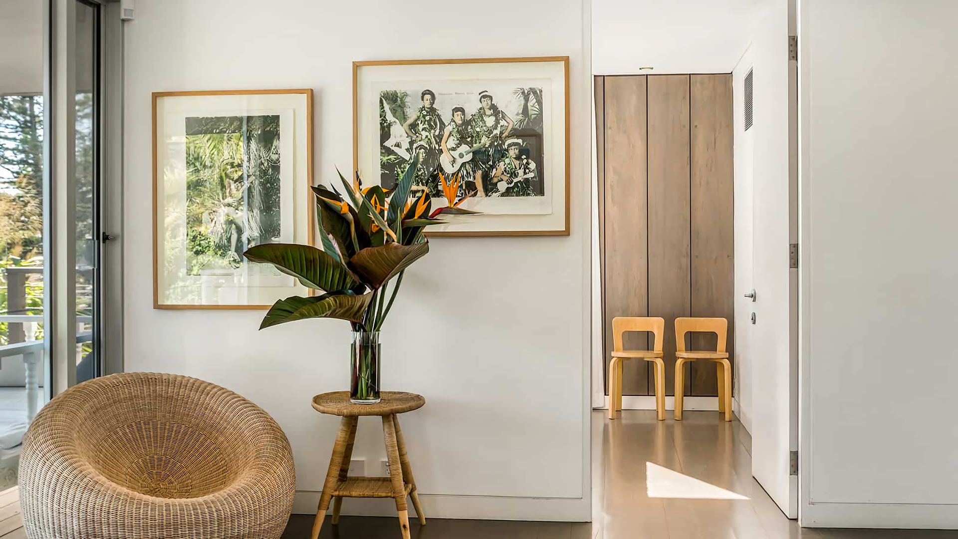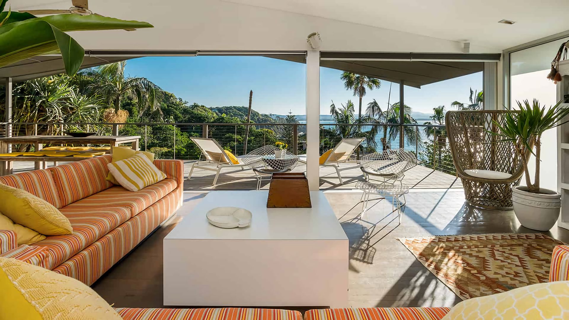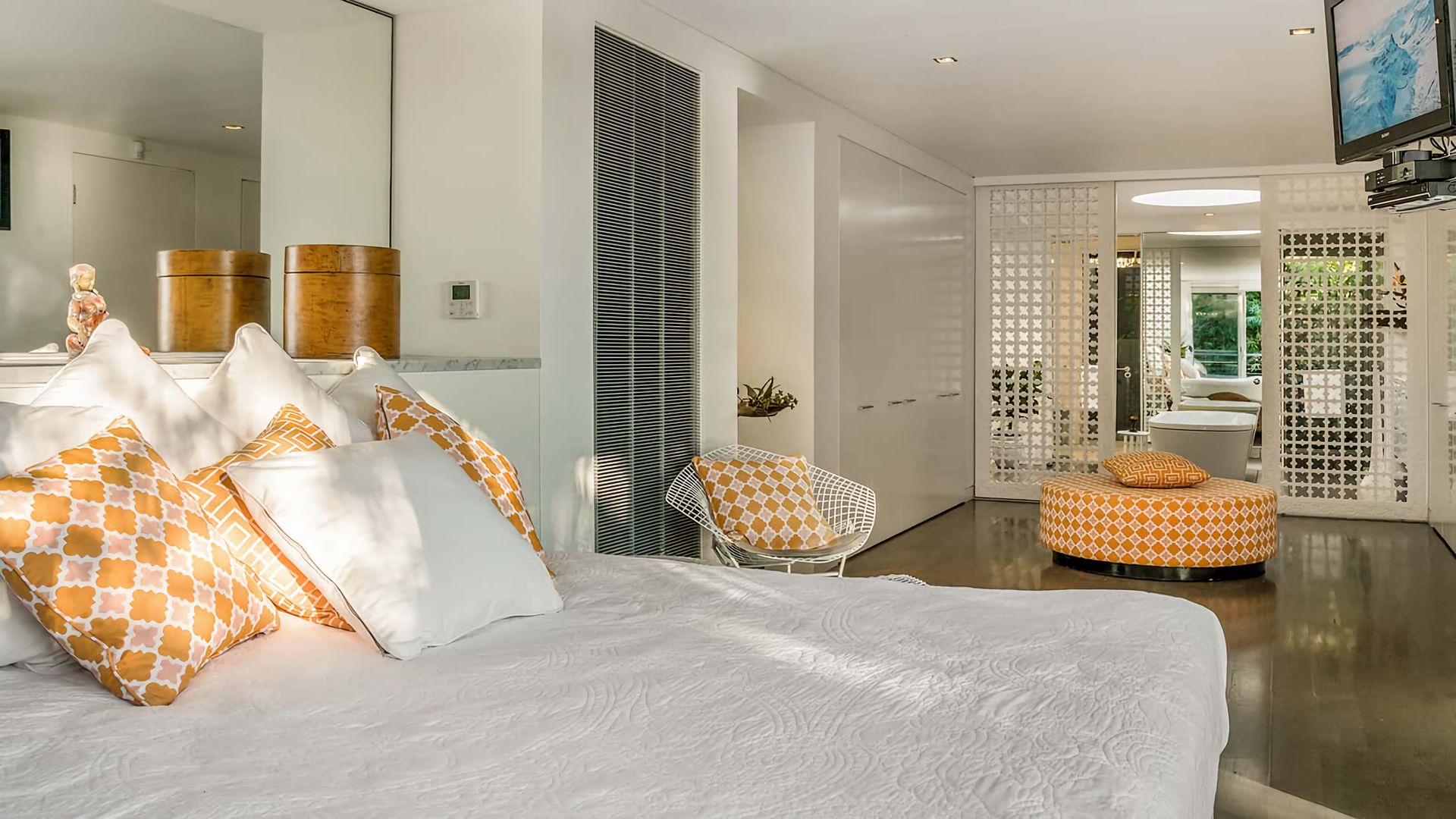 Designed by Australian design master Iain Halliday of BKH, the villa leaves nothing to chance. The dramatic orange staircase welcomes you into the home, leading to the top-level open-planned living space. Floor-to-ceiling windows are present throughout, creating a seamless transition between indoor privacy and outdoor pleasure, never losing sight of the iconic beachfront.