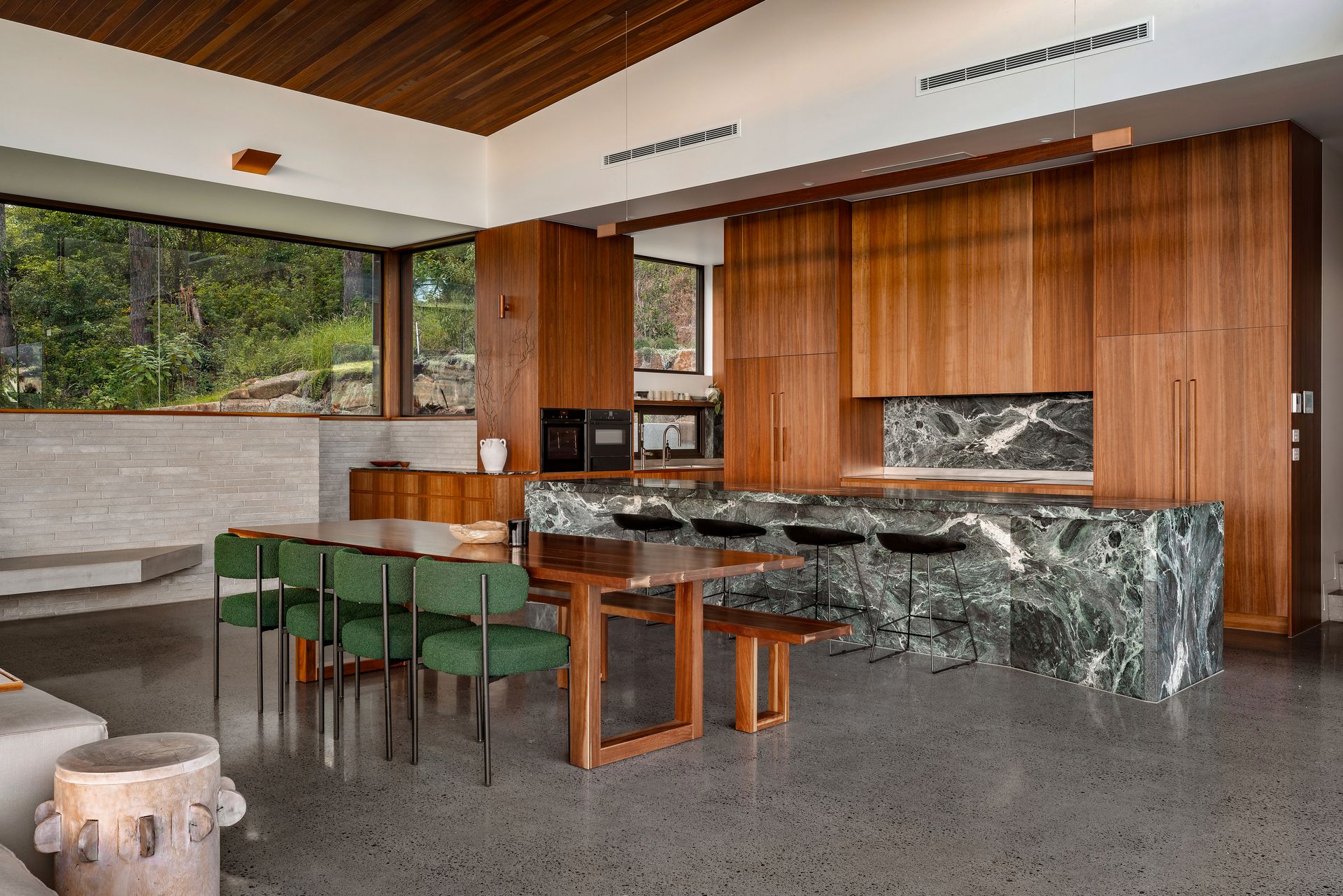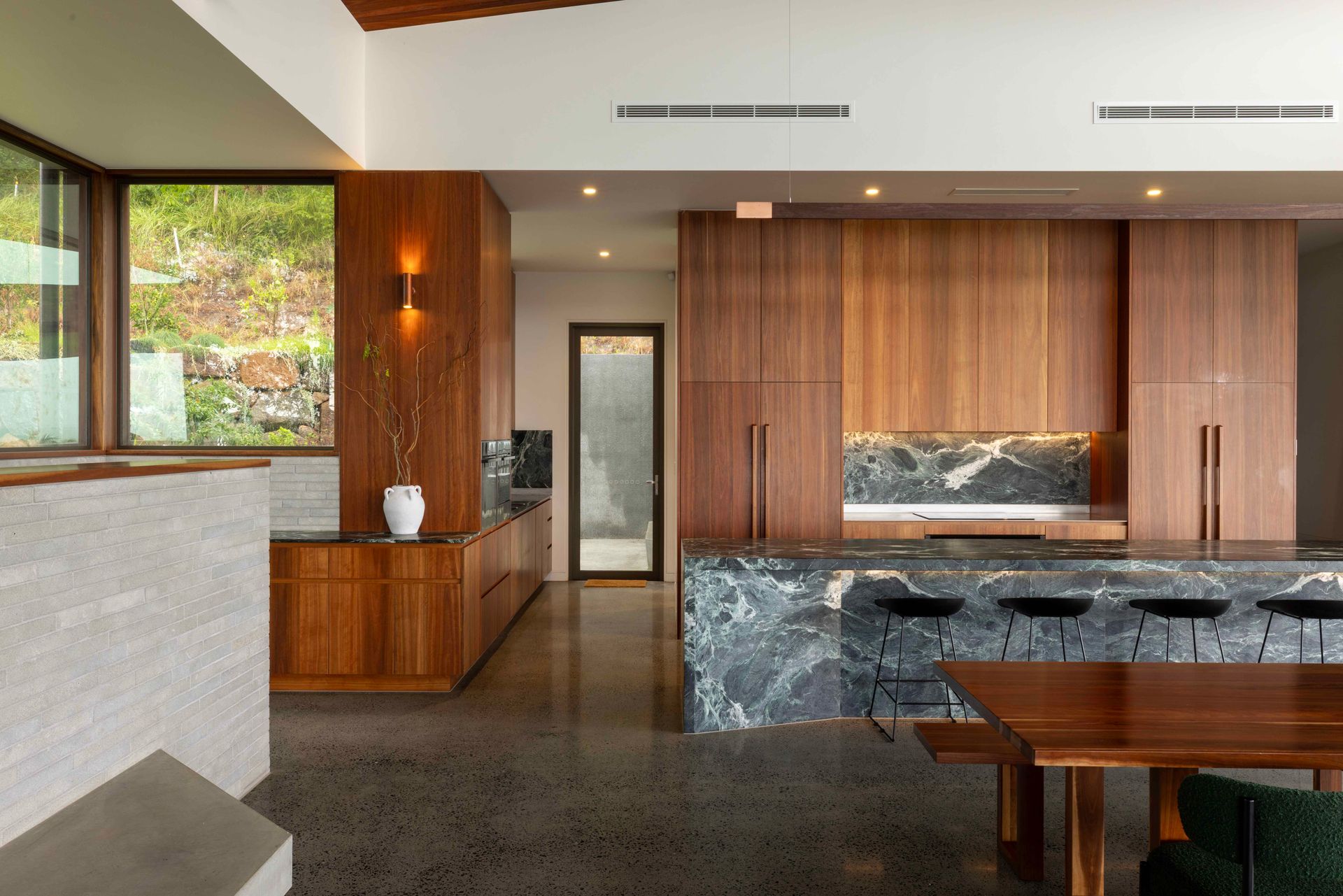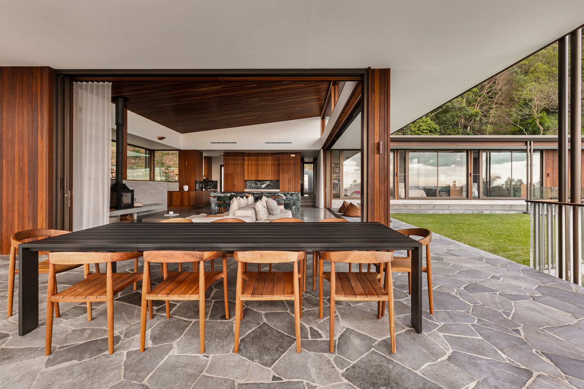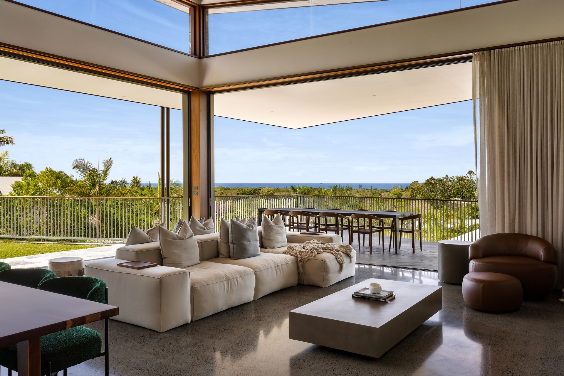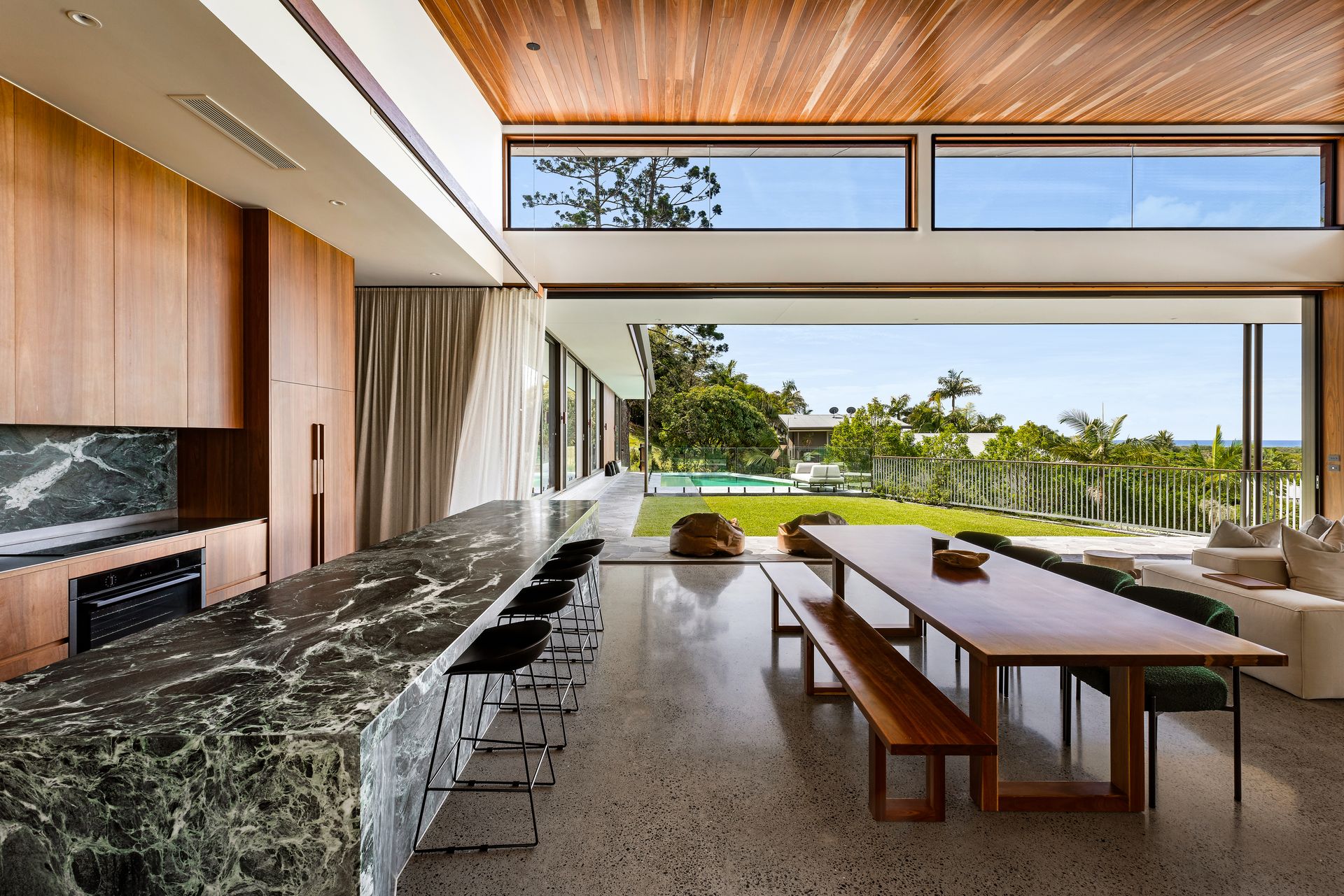 At the heart of the property is a large open-plan kitchen, dining and living space designed for both everyday living and entertaining. Expansive windows invite natural light throughout the home while framing the impressive outlook.