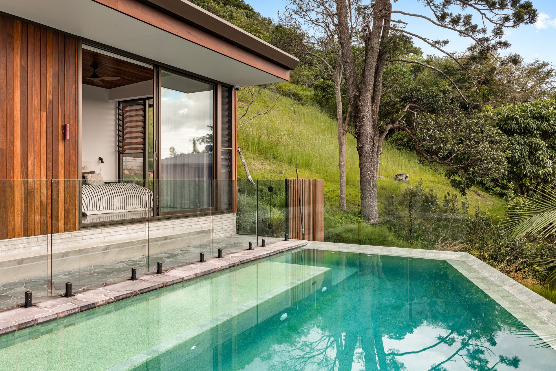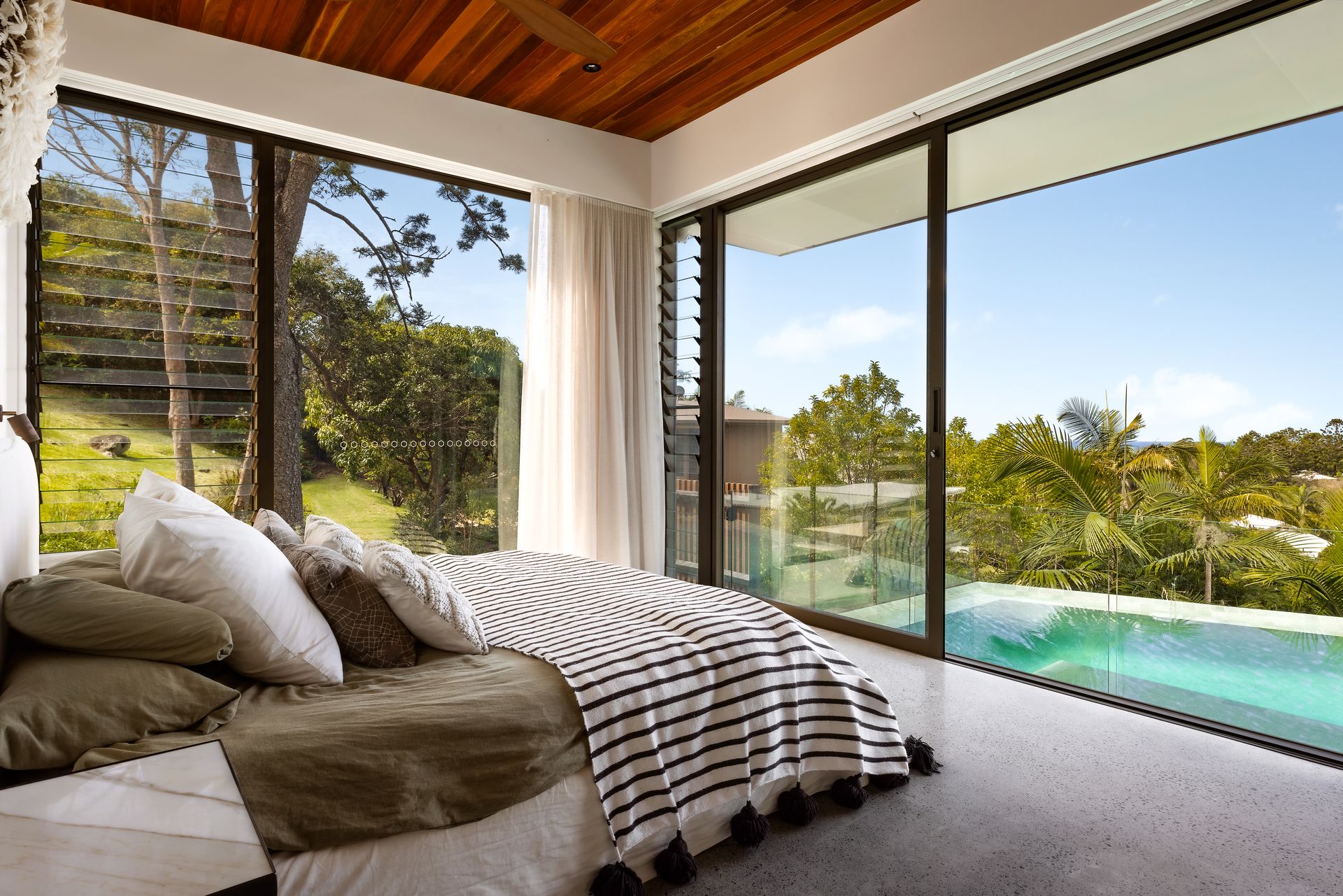 The home features five spacious bedrooms and four beautifully appointed bathrooms, with every bedroom enjoying its own stunning view. The master suite is a true retreat, designed as an adult oasis with its own private lounge room, bedroom and bathroom — creating a peaceful sanctuary within the home.