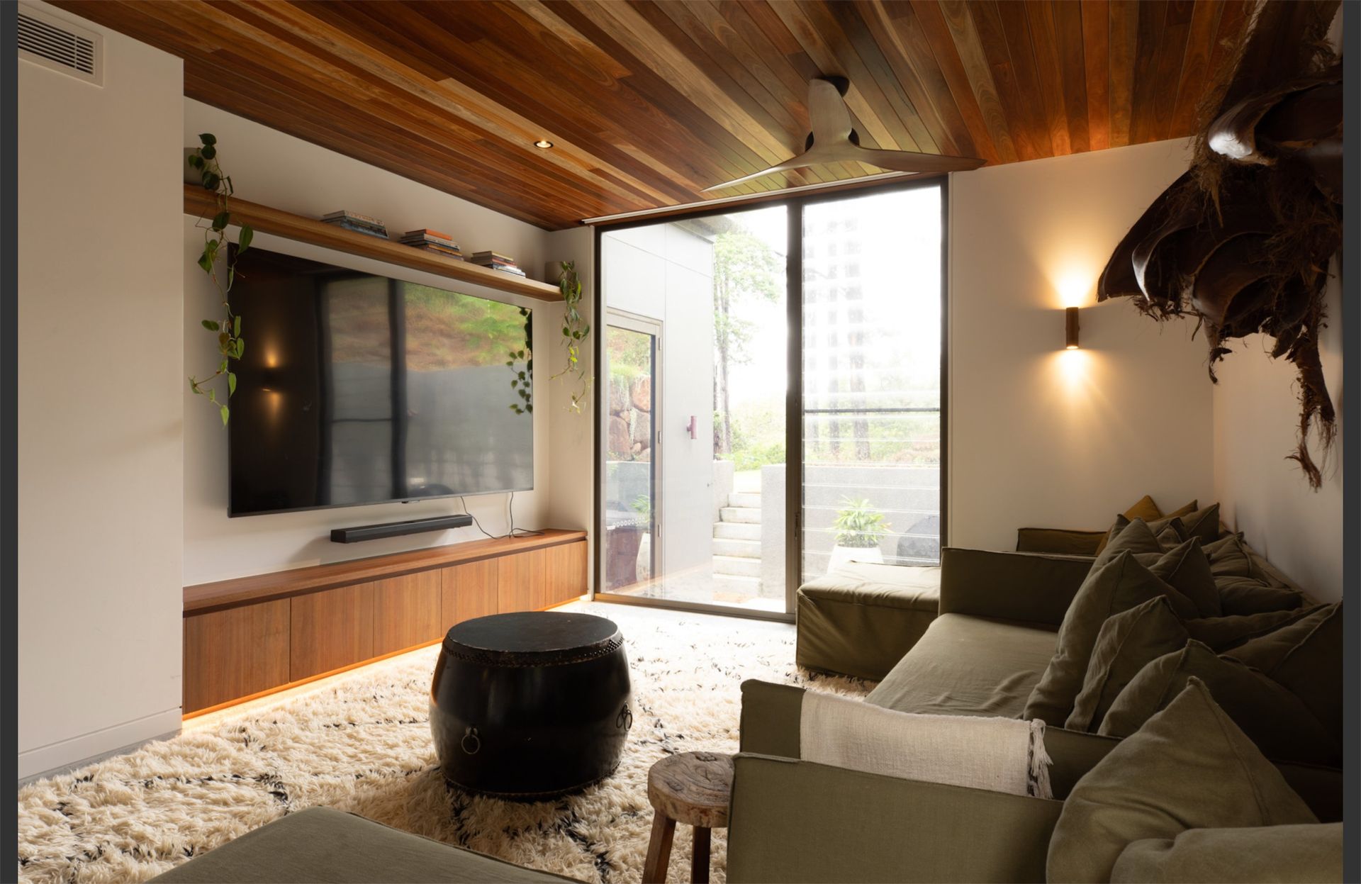 Designed with wellness and lifestyle in mind, the home includes a full gym, ice bath. copper hot water outdoor shower and a brand-new custom-designed traditional sauna crafted from premium Canadian Western Red Cedar. Outside, a beautiful magnesium swimming pool provides the perfect place to relax and enjoy the elevated views.