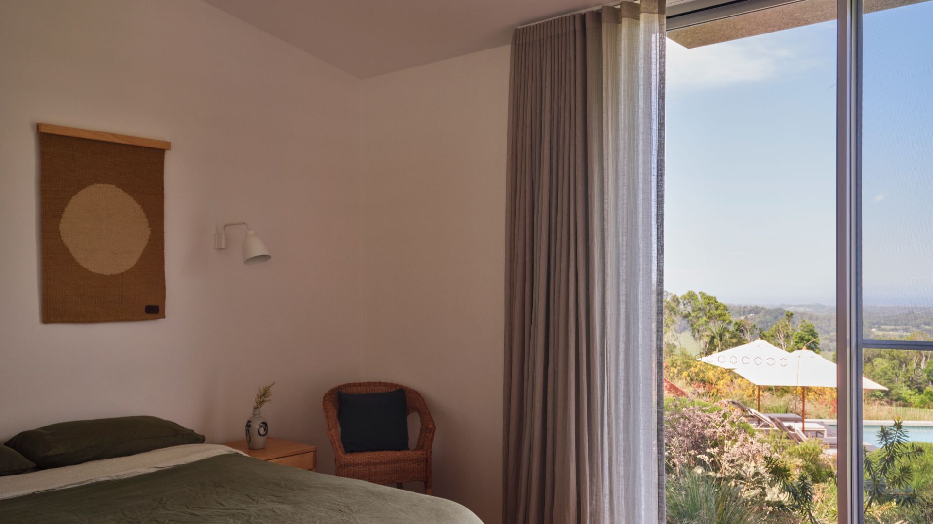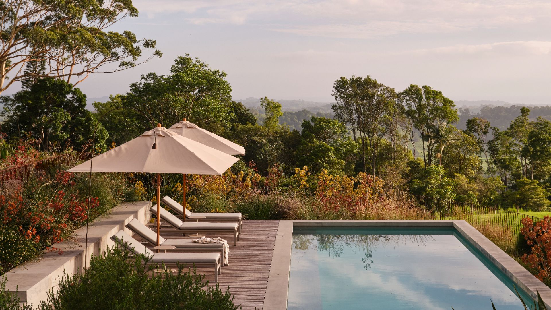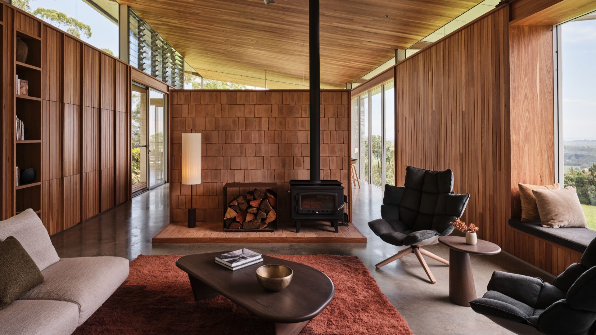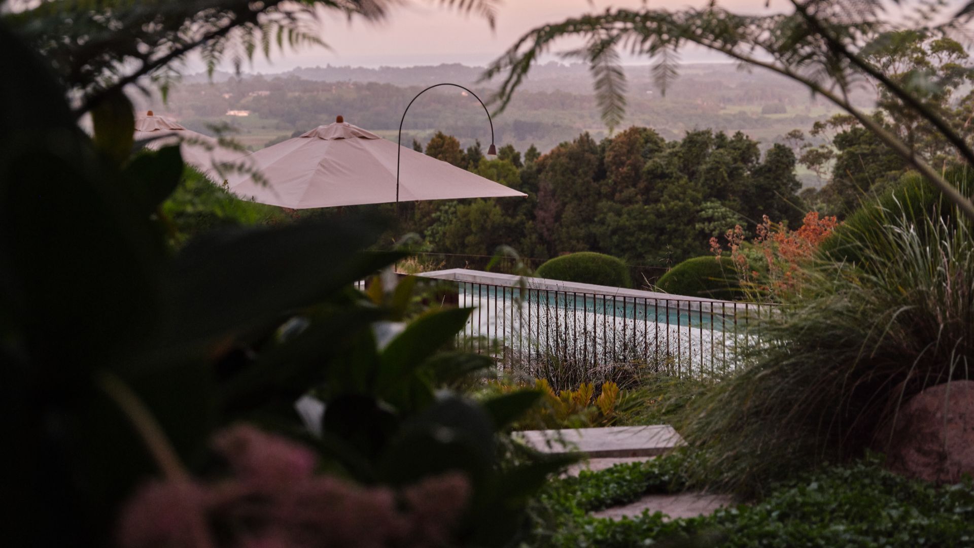 Designed for calm and connection, the home features elegant architecture, light-filled interiors, and seamless indoor–outdoor living. Spacious living areas flow from the north-east facing deck through to the kitchen, lounge, pool, and bedroom wing, all framed by picture windows capturing coastal, rainforest, and garden views. A striking terracotta wall and steel firebox create a warm gathering space, perfect year-round.