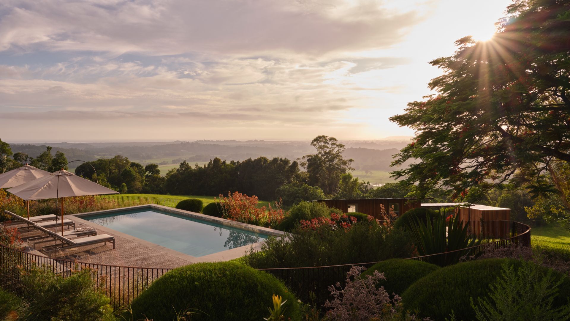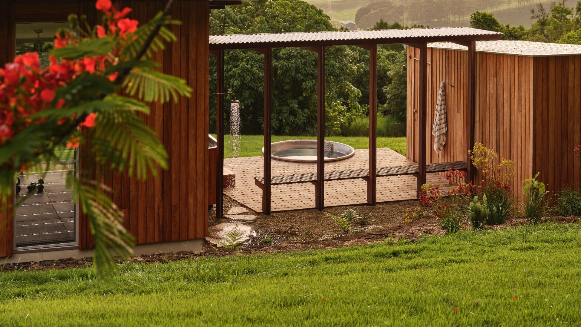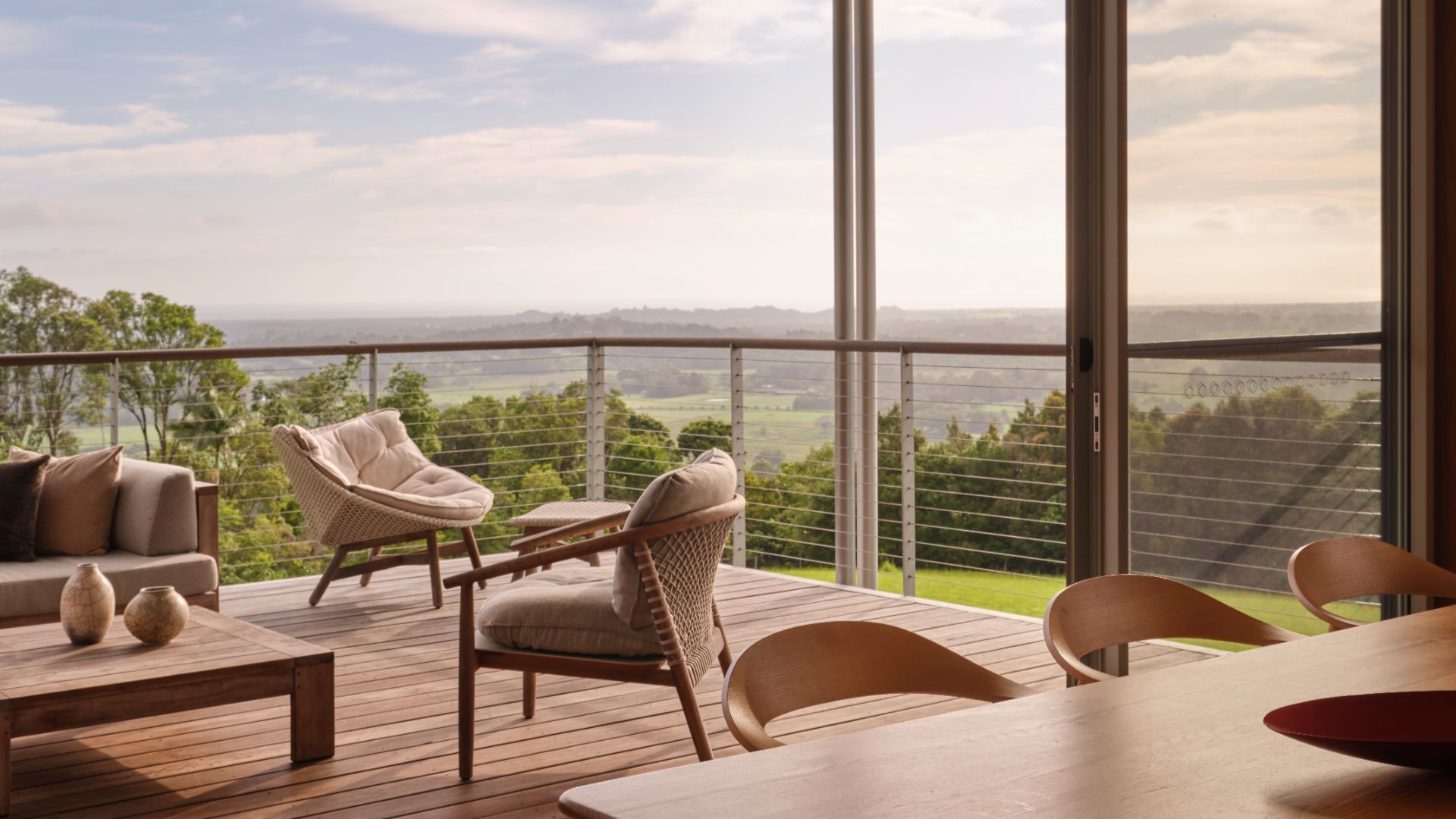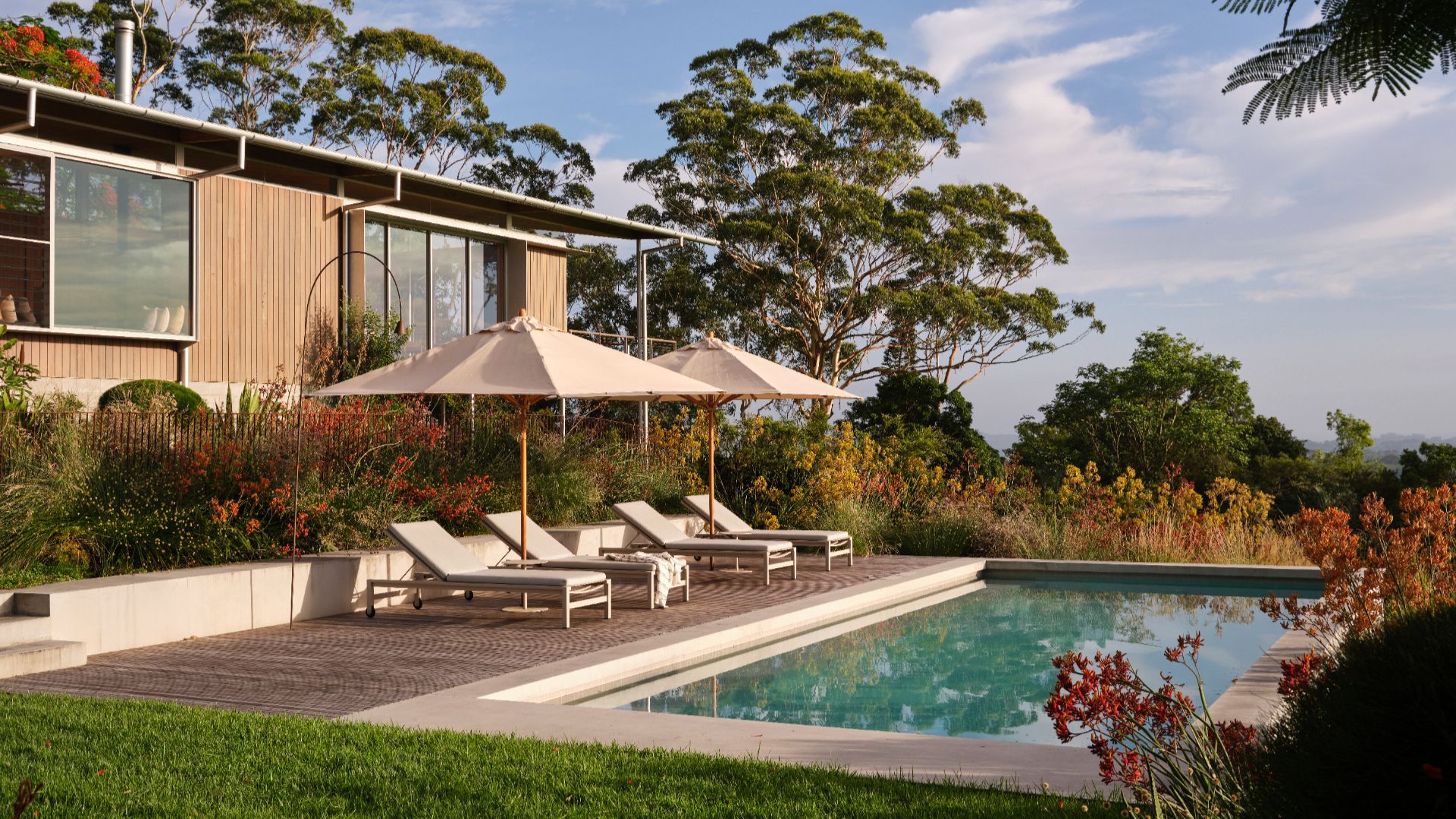 Designed for calm and connection, the home features elegant architecture, light-filled interiors, and seamless indoor–outdoor living. Spacious living areas flow from the north-east facing deck through to the kitchen, lounge, pool, and bedroom wing, all framed by picture windows capturing coastal, rainforest, and garden views. A striking terracotta wall and steel firebox create a warm gathering space, perfect year-round.
