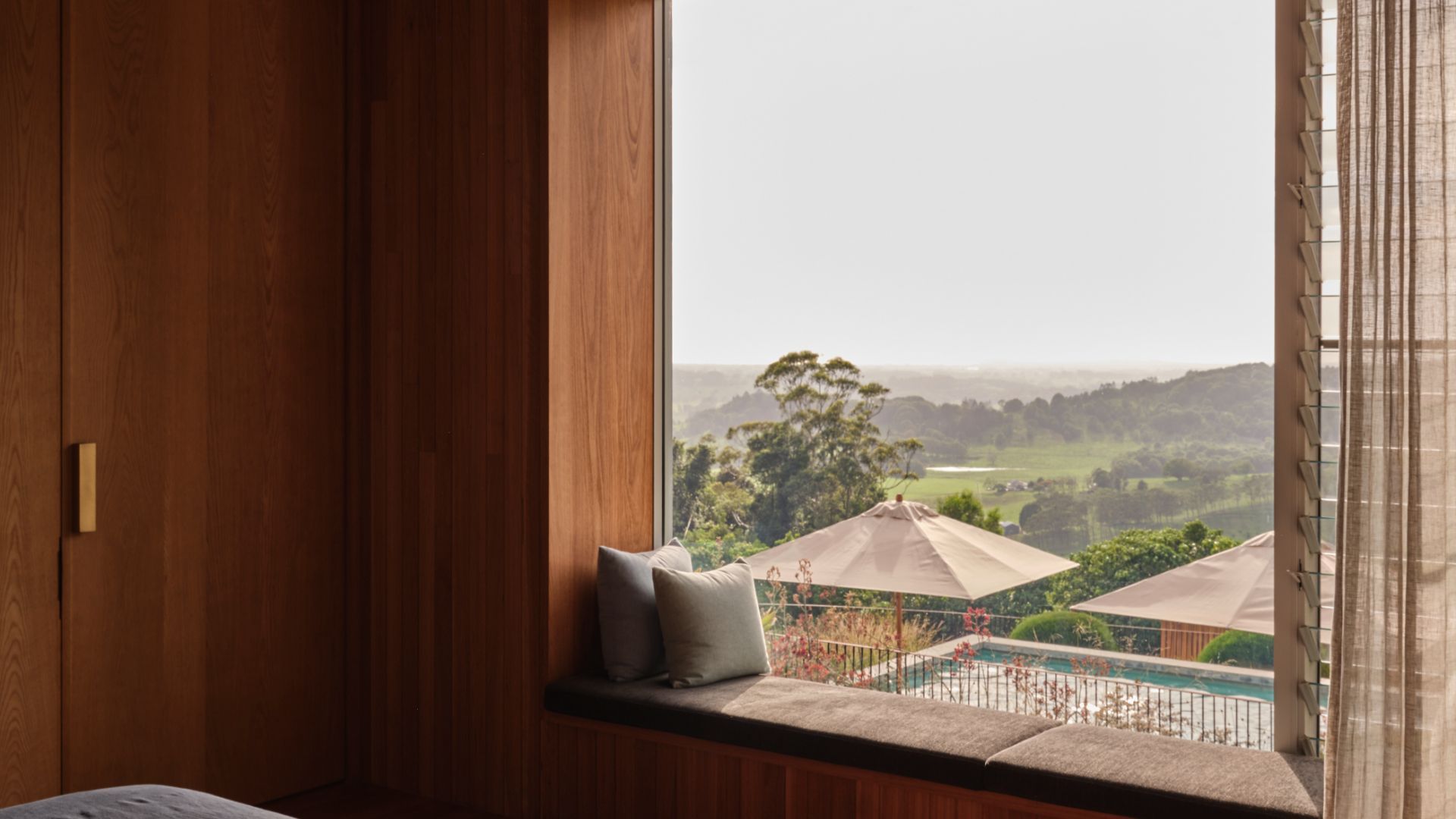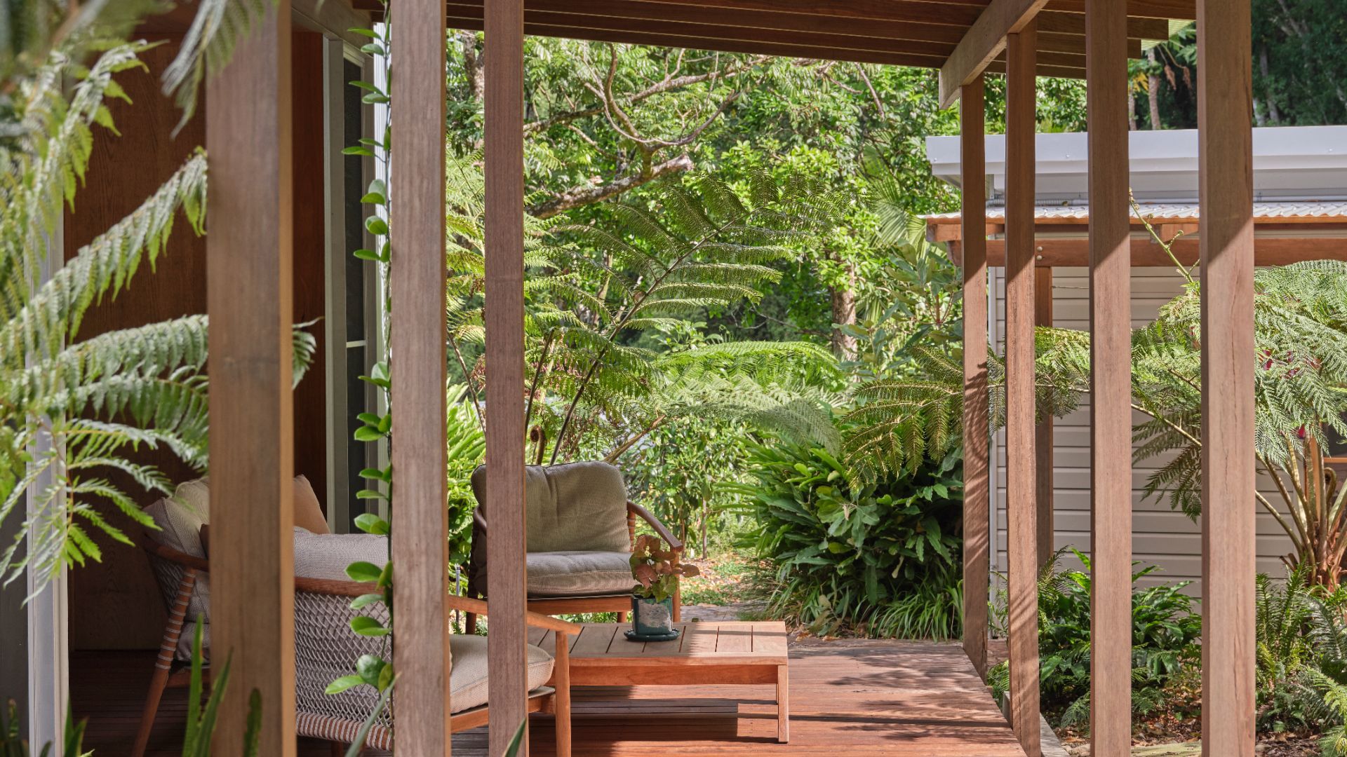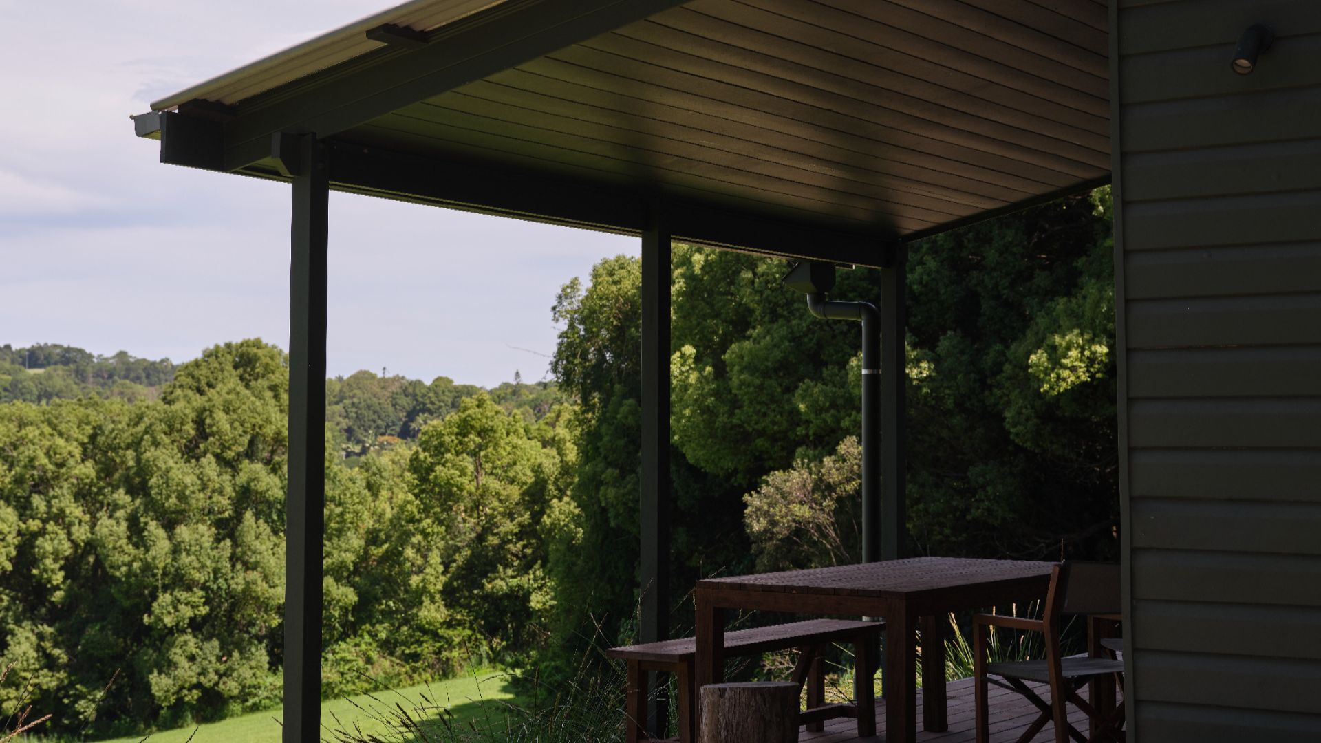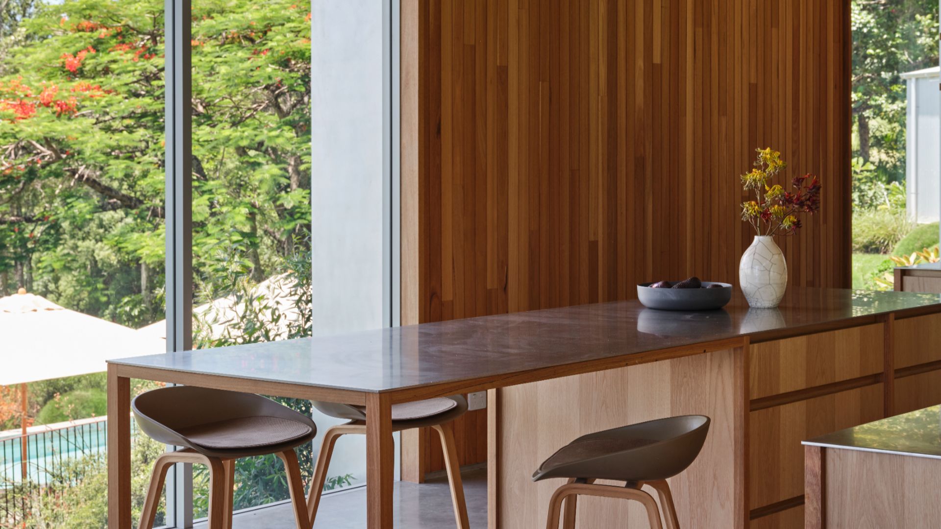 Designed for calm and connection, the home features elegant architecture, light-filled interiors, and seamless indoor–outdoor living. Spacious living areas flow from the north-east facing deck through to the kitchen, lounge, pool, and bedroom wing, all framed by picture windows capturing coastal, rainforest, and garden views. A striking terracotta wall and steel firebox create a warm gathering space, perfect year-round.