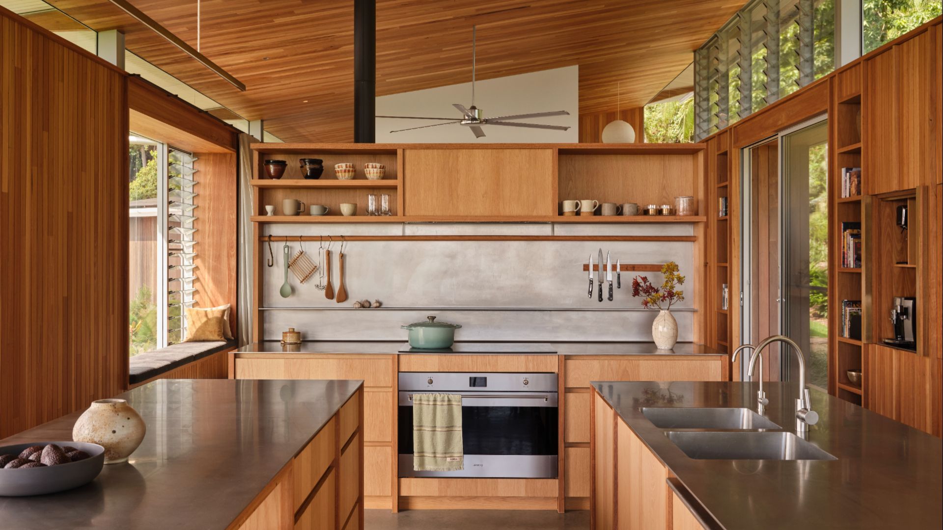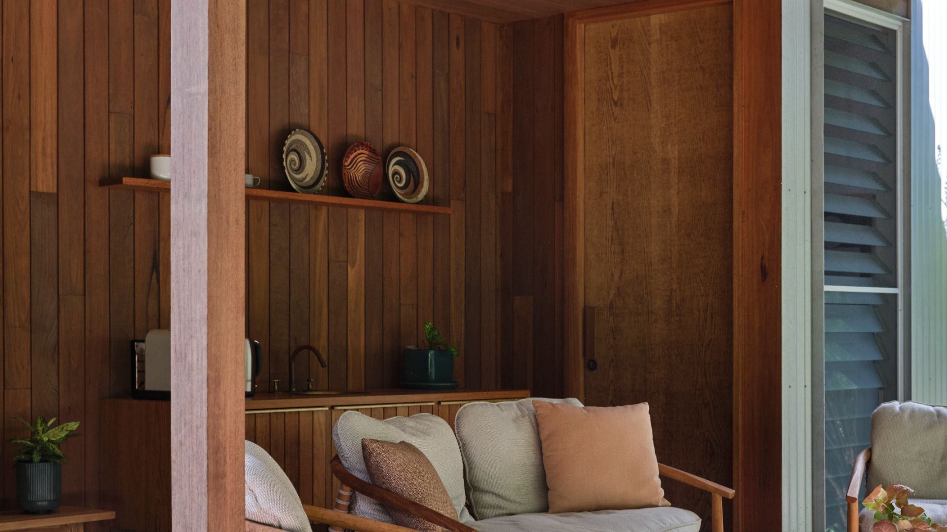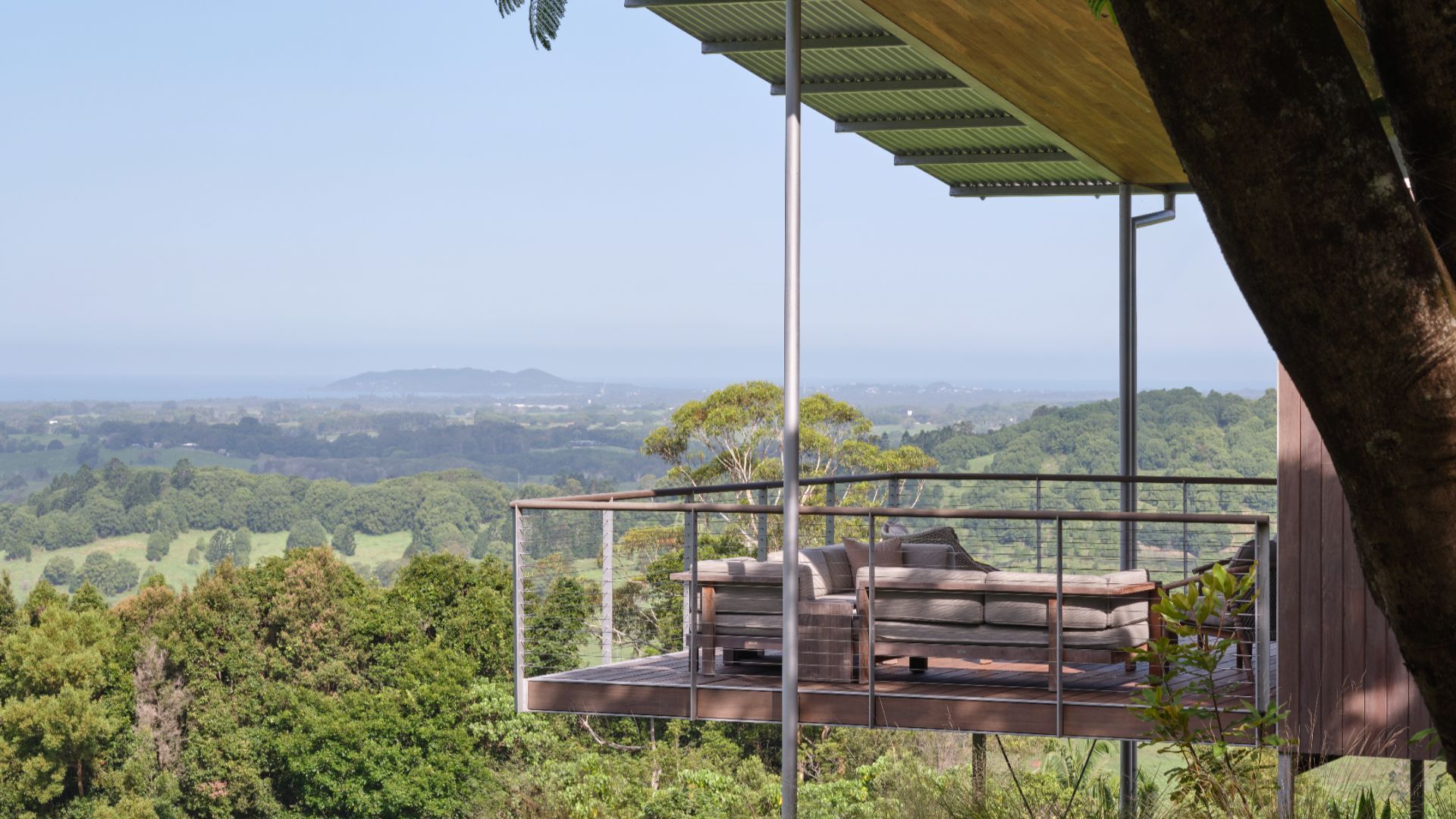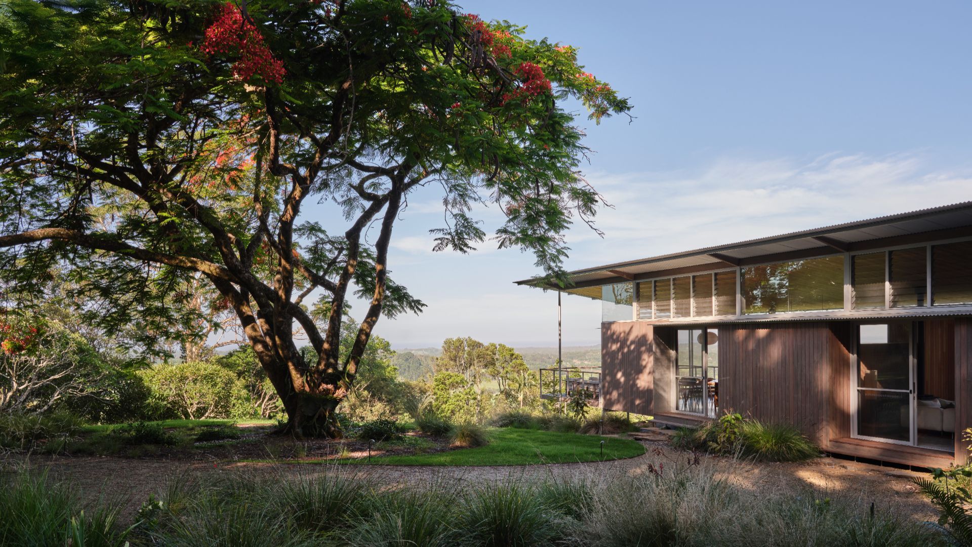 Designed for calm and connection, the home features elegant architecture, light-filled interiors, and seamless indoor–outdoor living. Spacious living areas flow from the north-east facing deck through to the kitchen, lounge, pool, and bedroom wing, all framed by picture windows capturing coastal, rainforest, and garden views. A striking terracotta wall and steel firebox create a warm gathering space, perfect year-round.