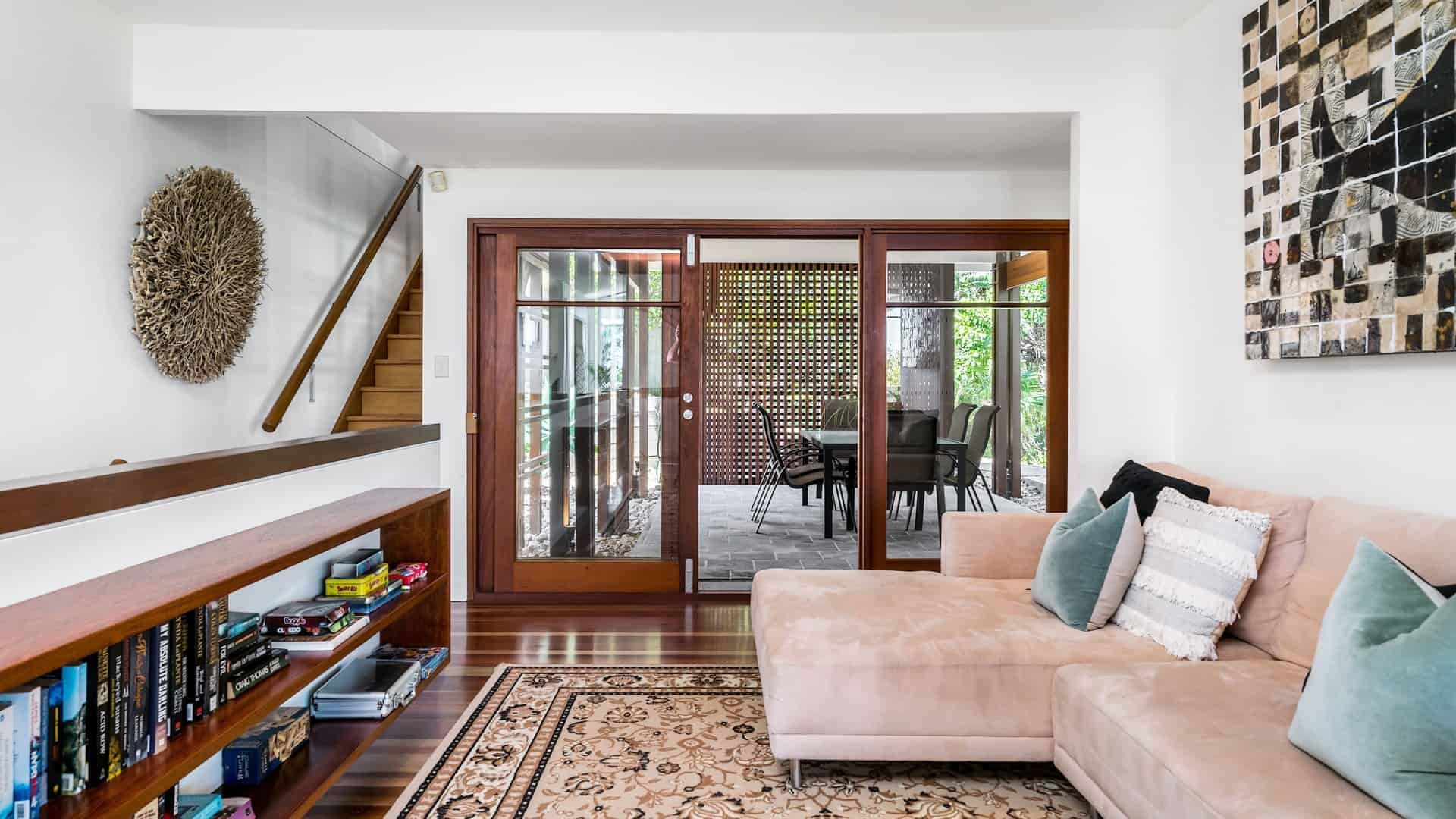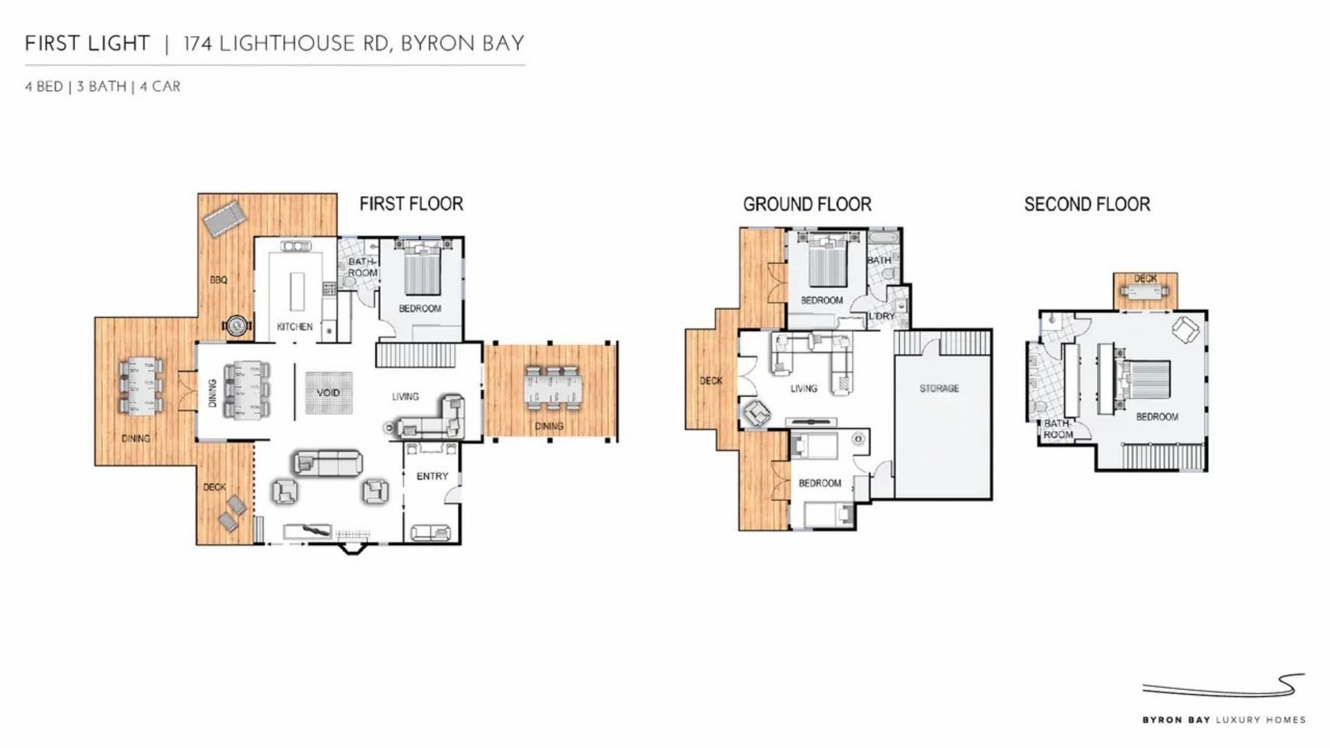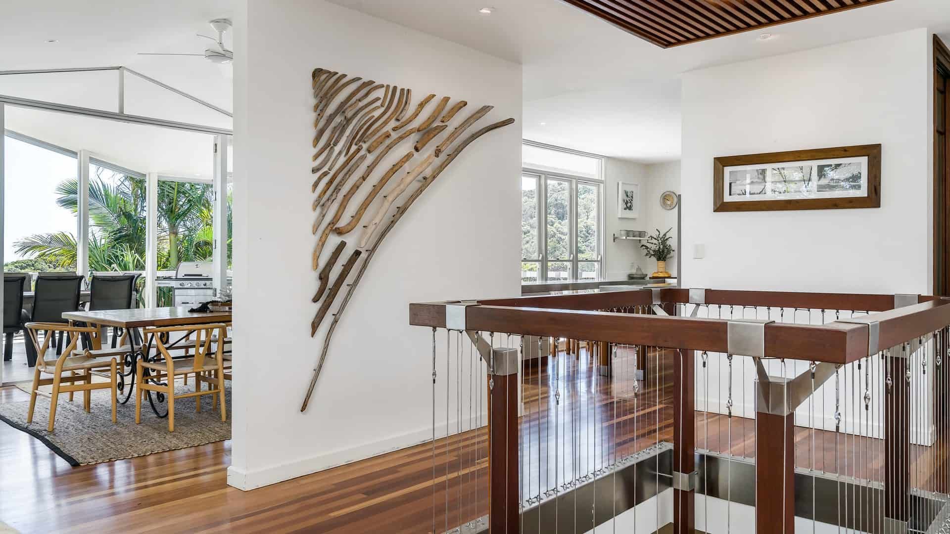 First Light is a large contemporary 4 bedroom, 3 bathroom property set over three levels, located a short walk to The Pass and Clarkes Beach and an easy 15-minute walk into town.