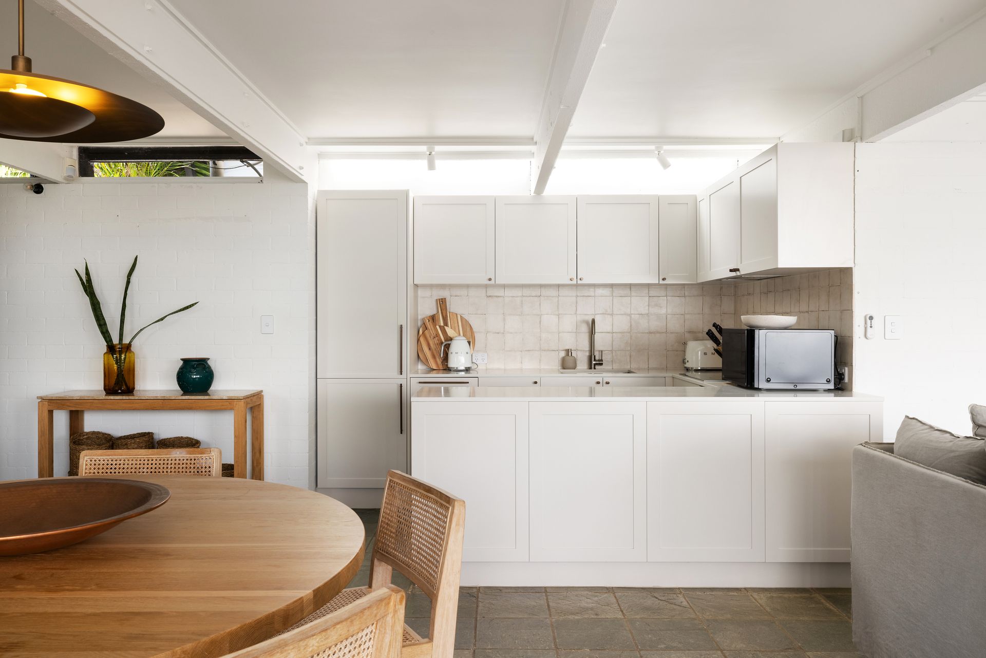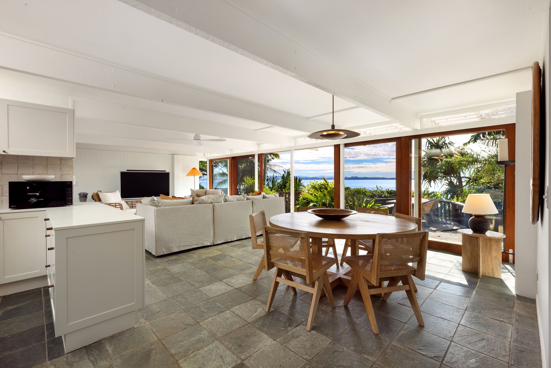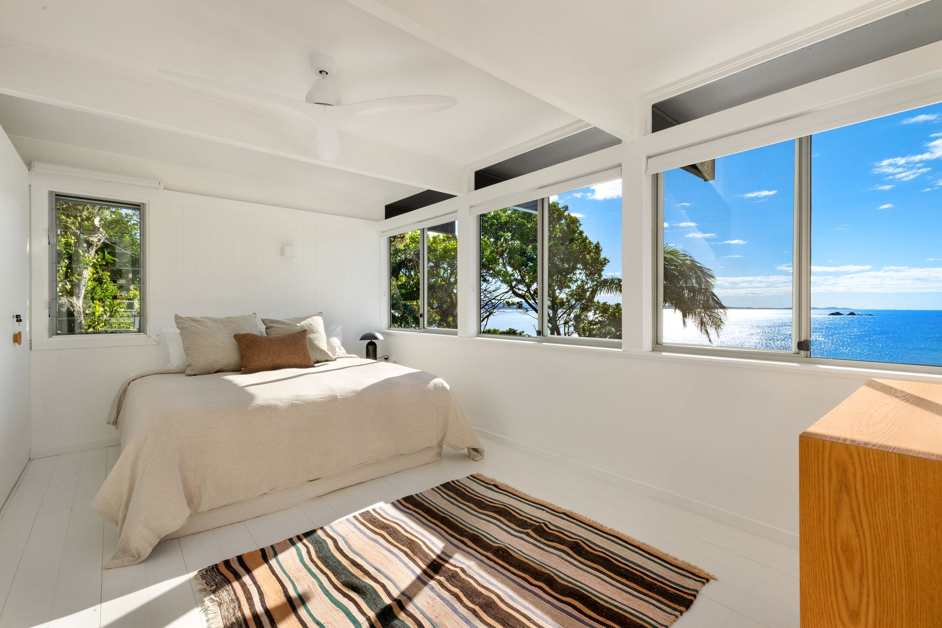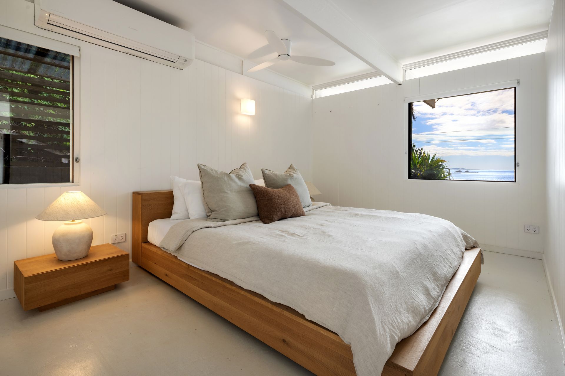 Designed for comfort and privacy, High Tide features three bedrooms—two in the main residence and a separate self-contained studio with its own bathroom and sitting area. The fully equipped kitchen includes premium Smeg appliances, while two stylish bathrooms are complemented by an additional outdoor bath and shower for the ultimate in laid-back luxury.