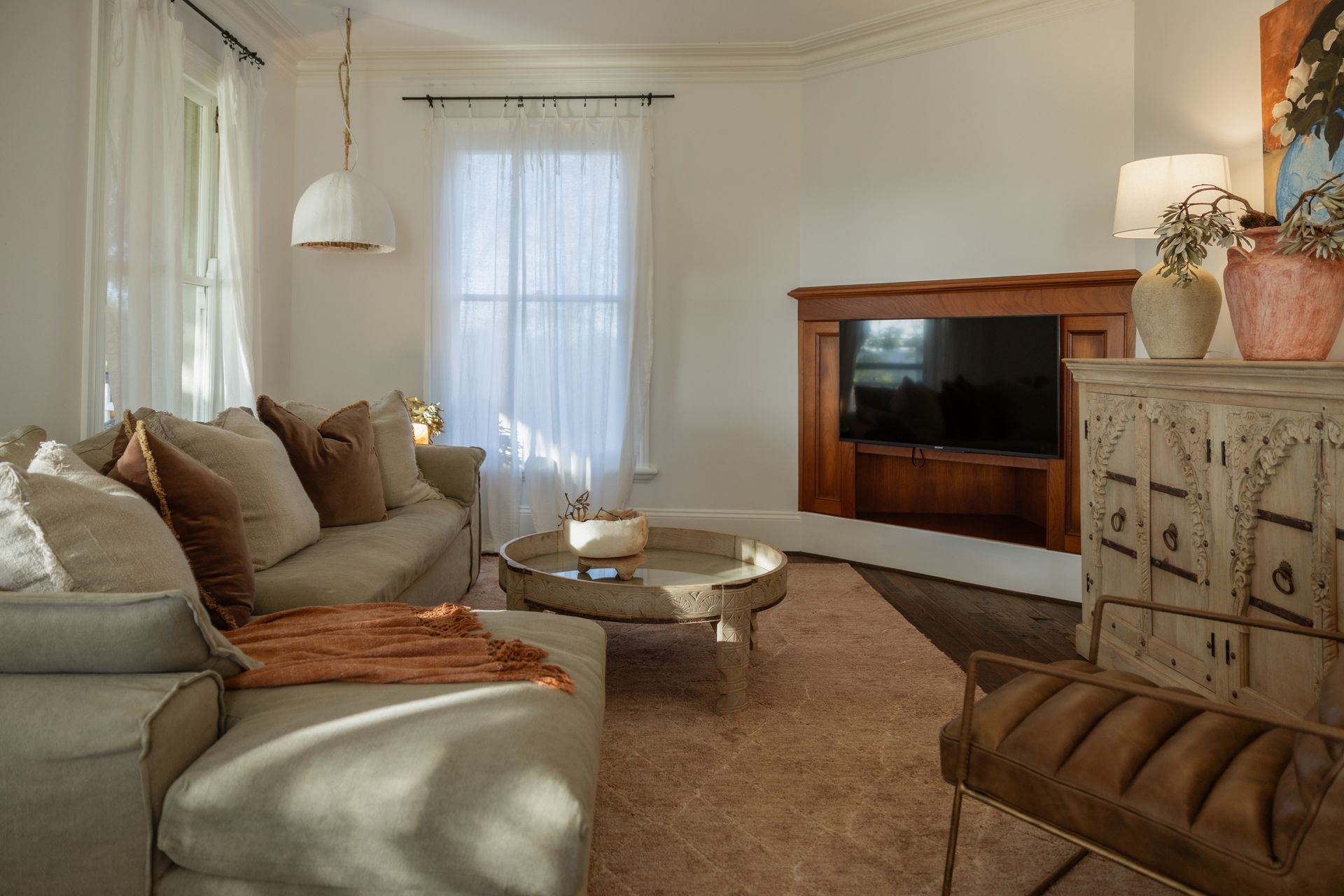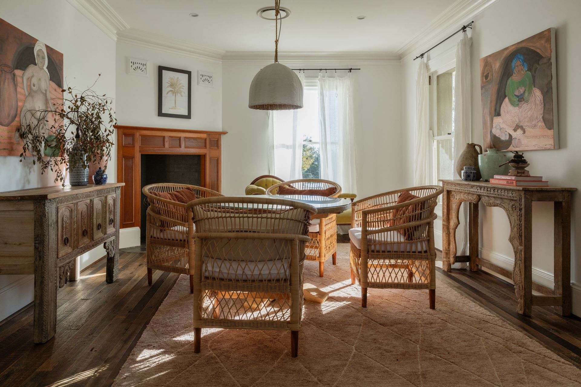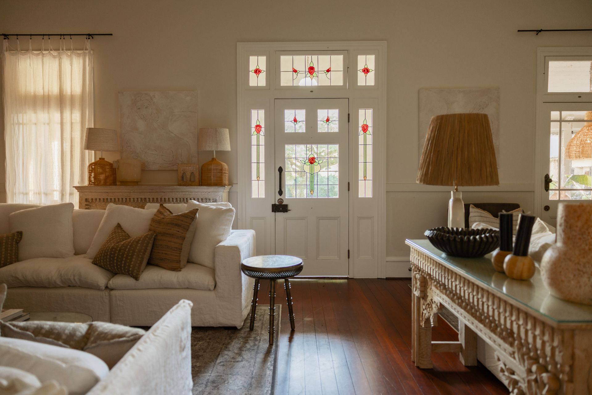 Hinterland House is a refined example of heritage architecture, thoughtfully restored with care and attention to detail. Wraparound verandas and French doors open to leafy gardens, while the interiors are softened with natural textures and warm, earthy tones.