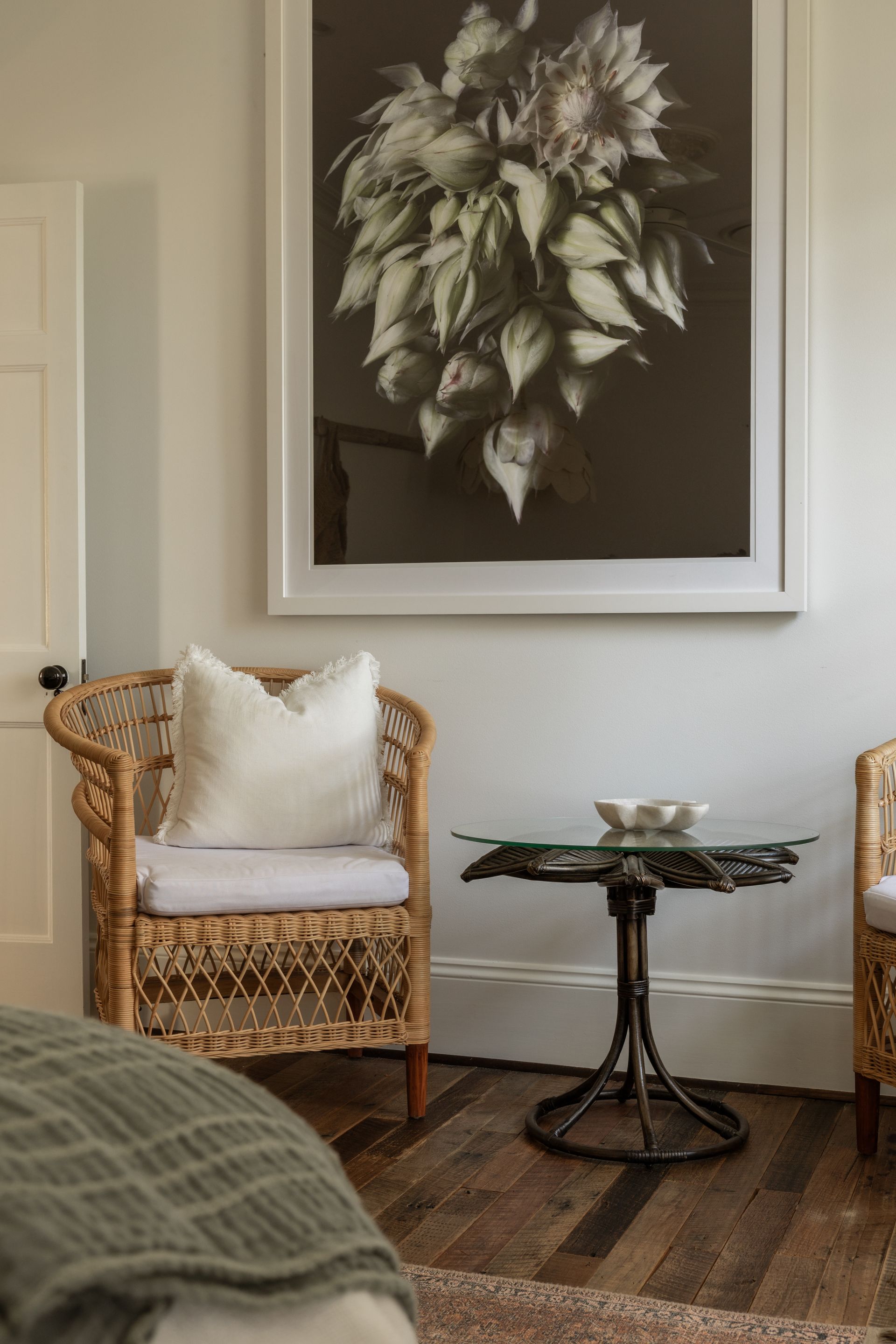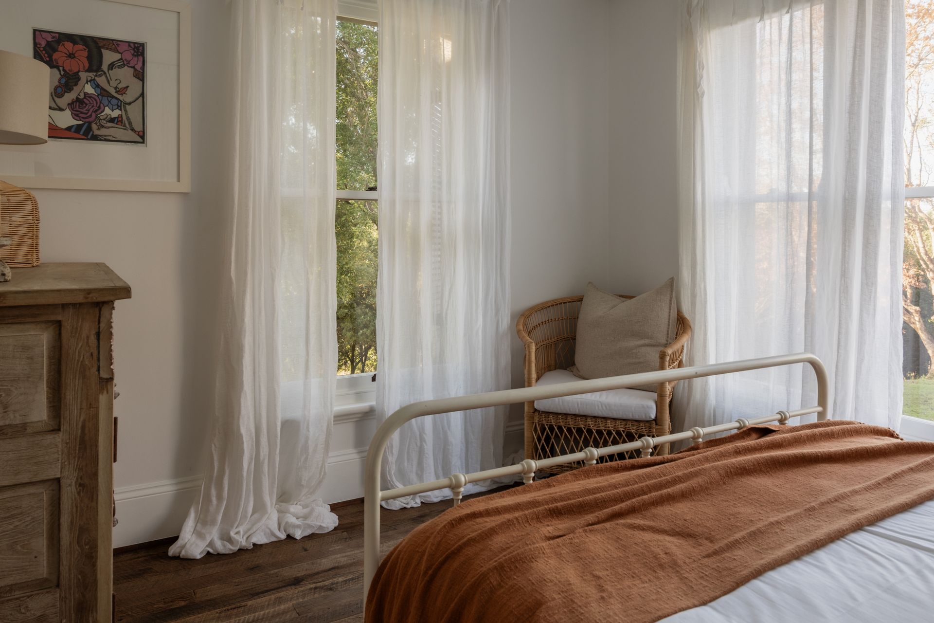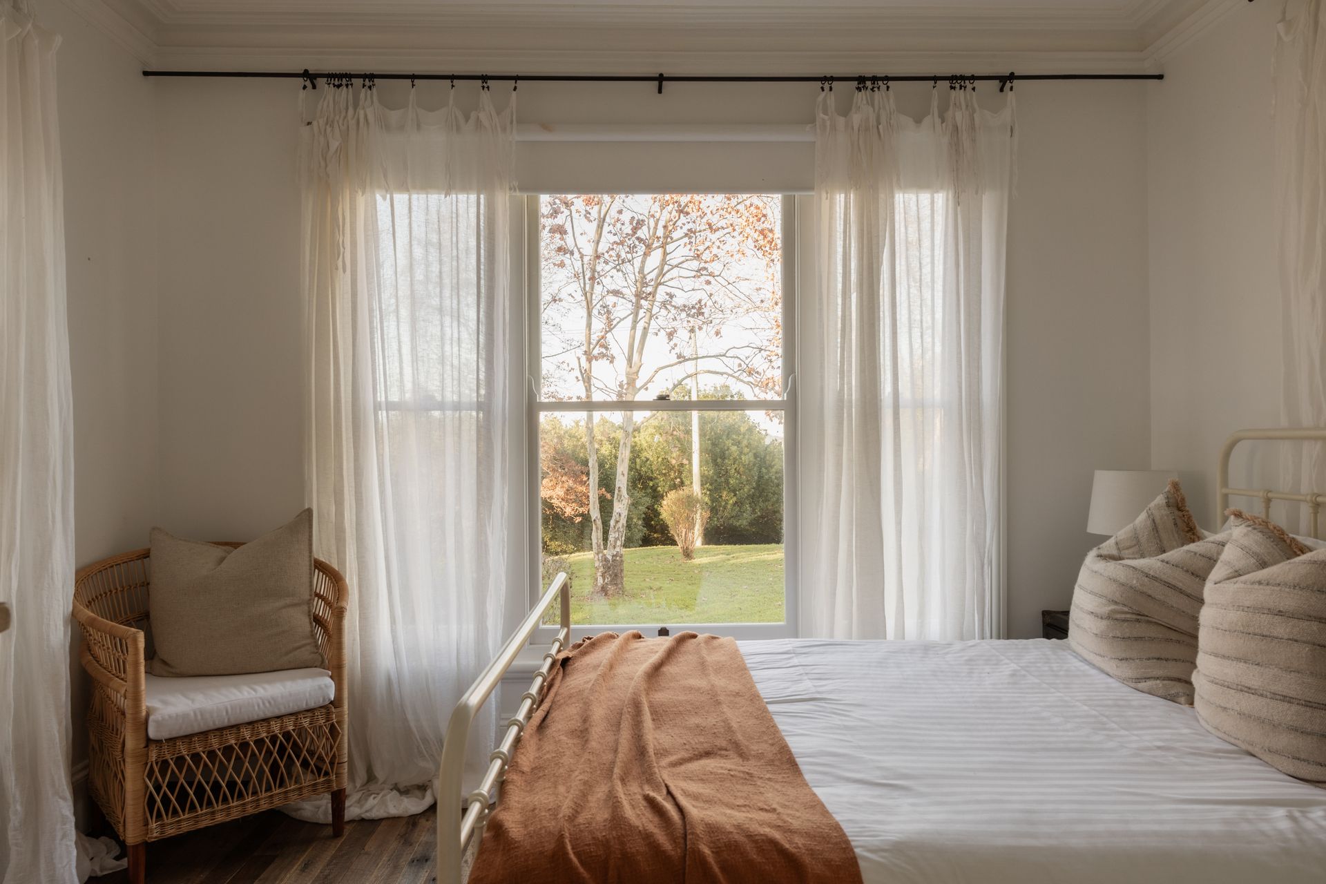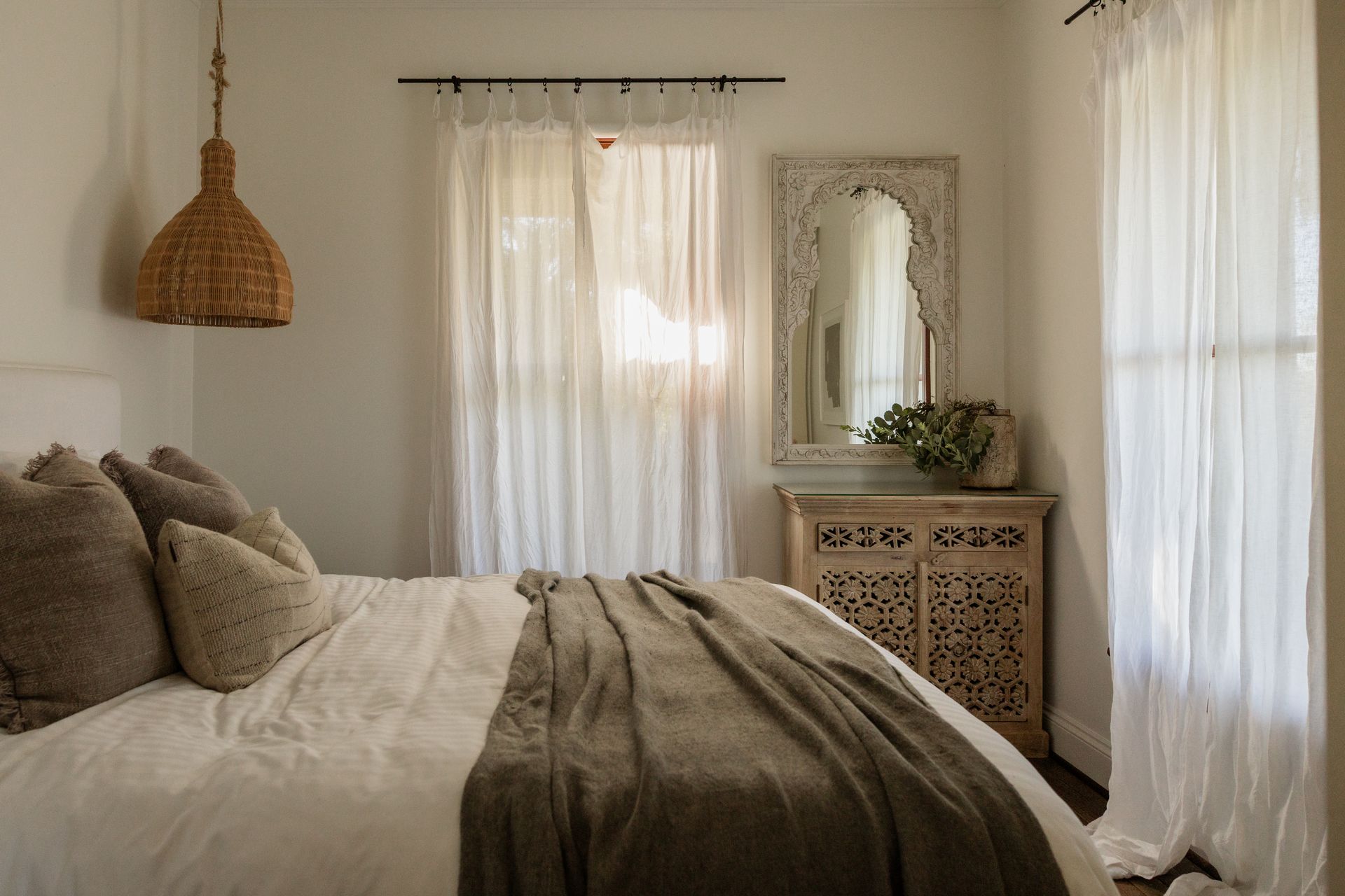 Hinterland House is a refined example of heritage architecture, thoughtfully restored with care and attention to detail. Wraparound verandas and French doors open to leafy gardens, while the interiors are softened with natural textures and warm, earthy tones.