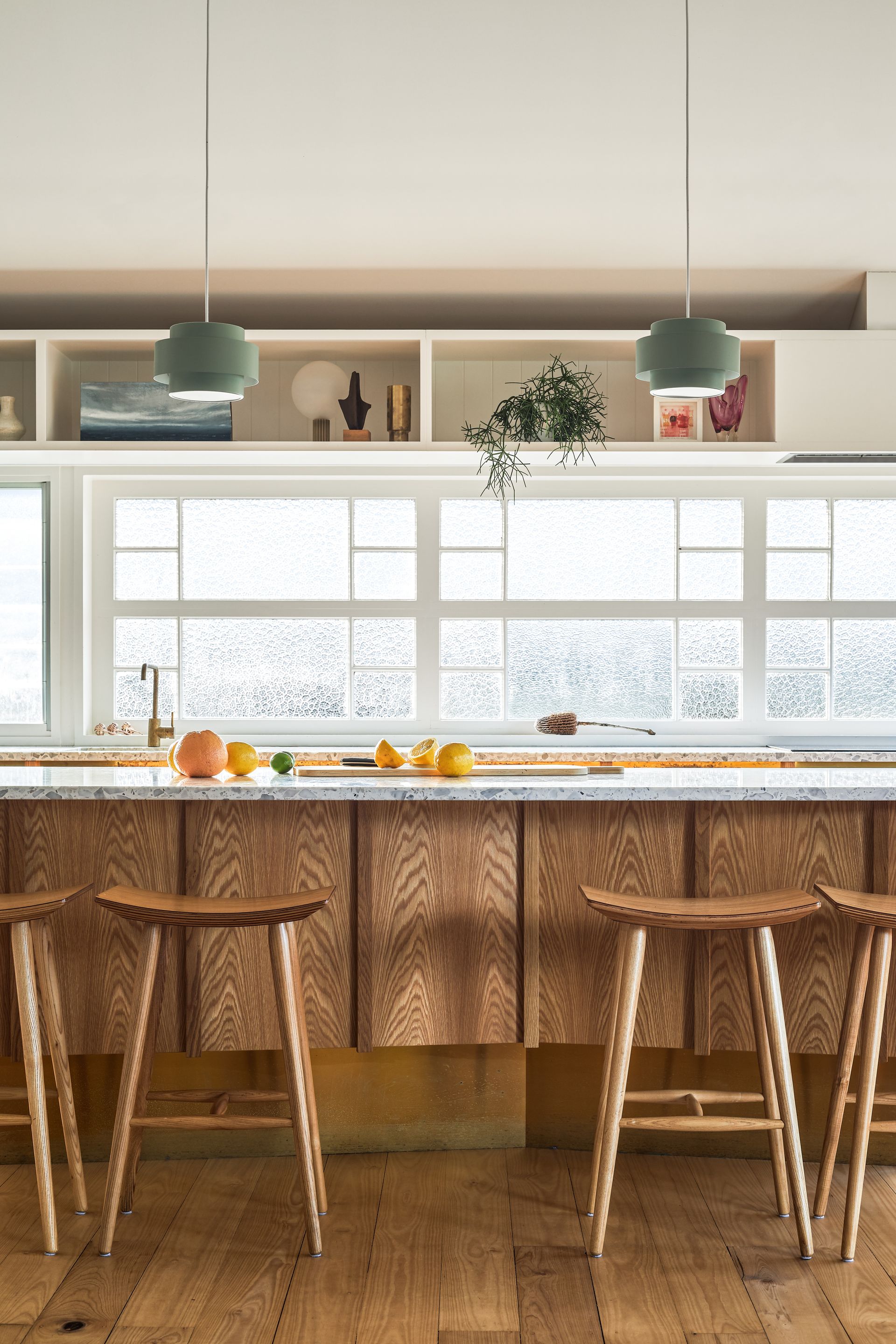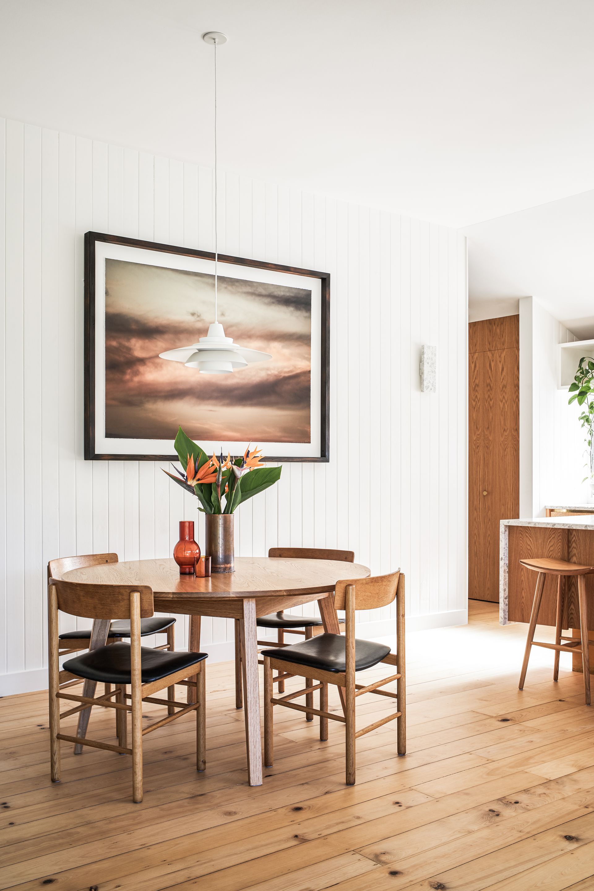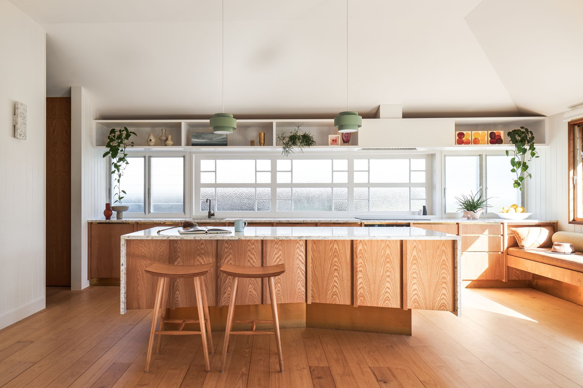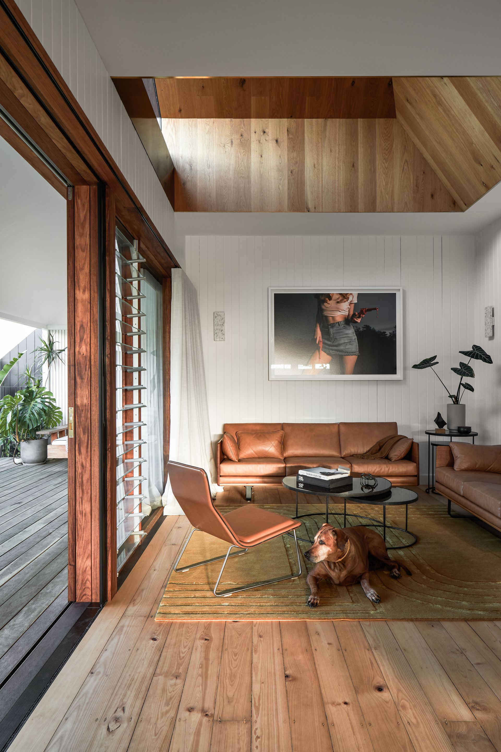 The kitchen is simple, stylish and well-equipped, featuring terrazzo benchtops, oak cabinetry and a hidden butler’s nook for extra space. Recycled Baltic Pine floorboards add warmth throughout the home, leading to three comfortable bedrooms. The master has its own ensuite, while the remaining rooms sit close to a flexible rumpus area or work-from-home space.